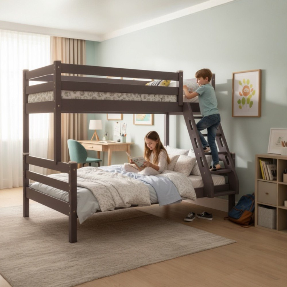 Продуманная конструкция и качественные материалы делают двухъярусную кровать Адель отличным выбором для двух детей живущих в одной комнате. Модель оснащена бортиком безопасности и наклонной лестницей для легкого доступа к верхнему уровню.