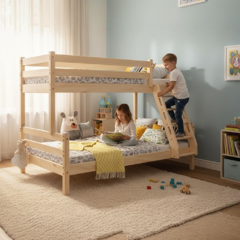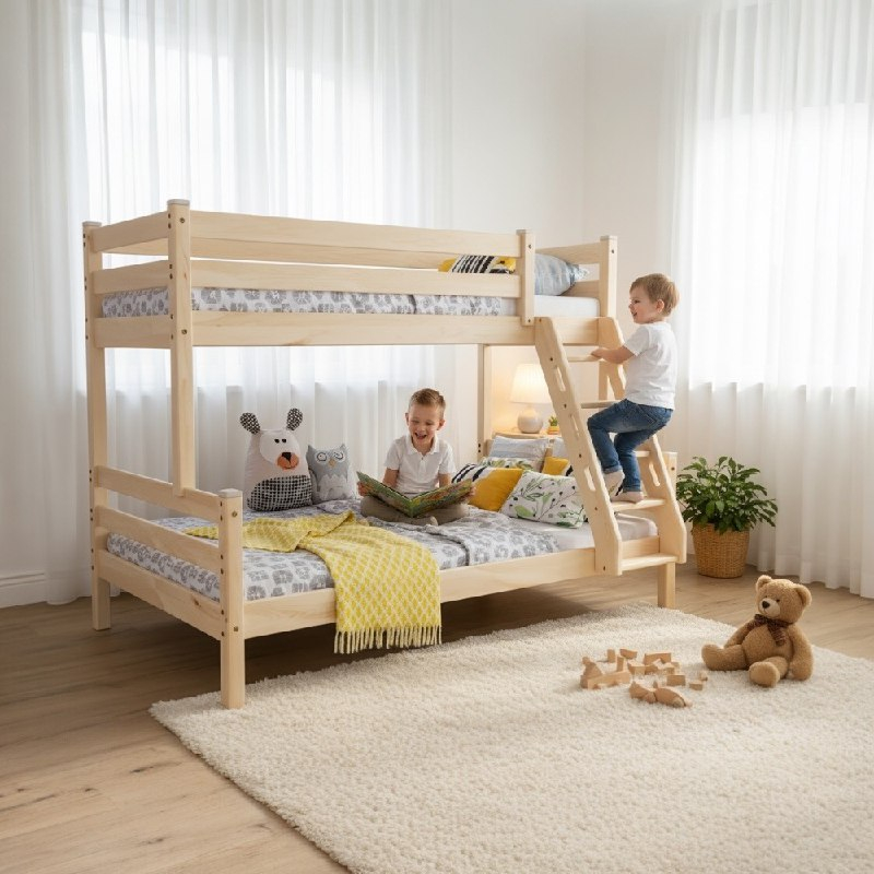Продуманная конструкция и качественные материалы делают двухъярусную кровать Адель отличным выбором для двух детей живущих в одной комнате. Модель оснащена бортиком безопасности и наклонной лестницей для легкого доступа к верхнему уровню.