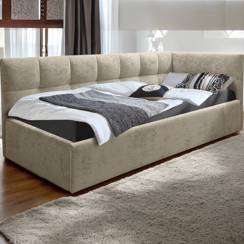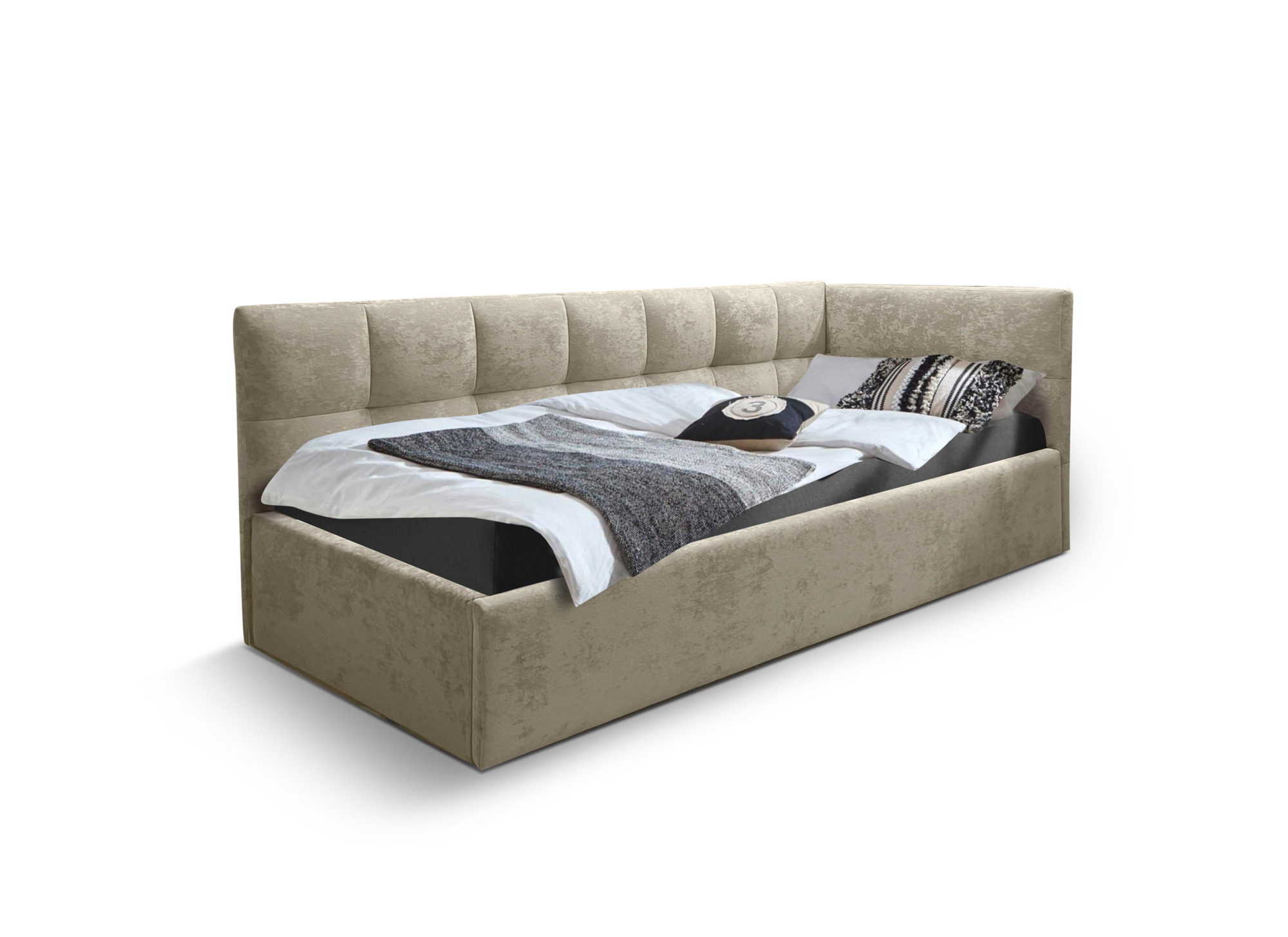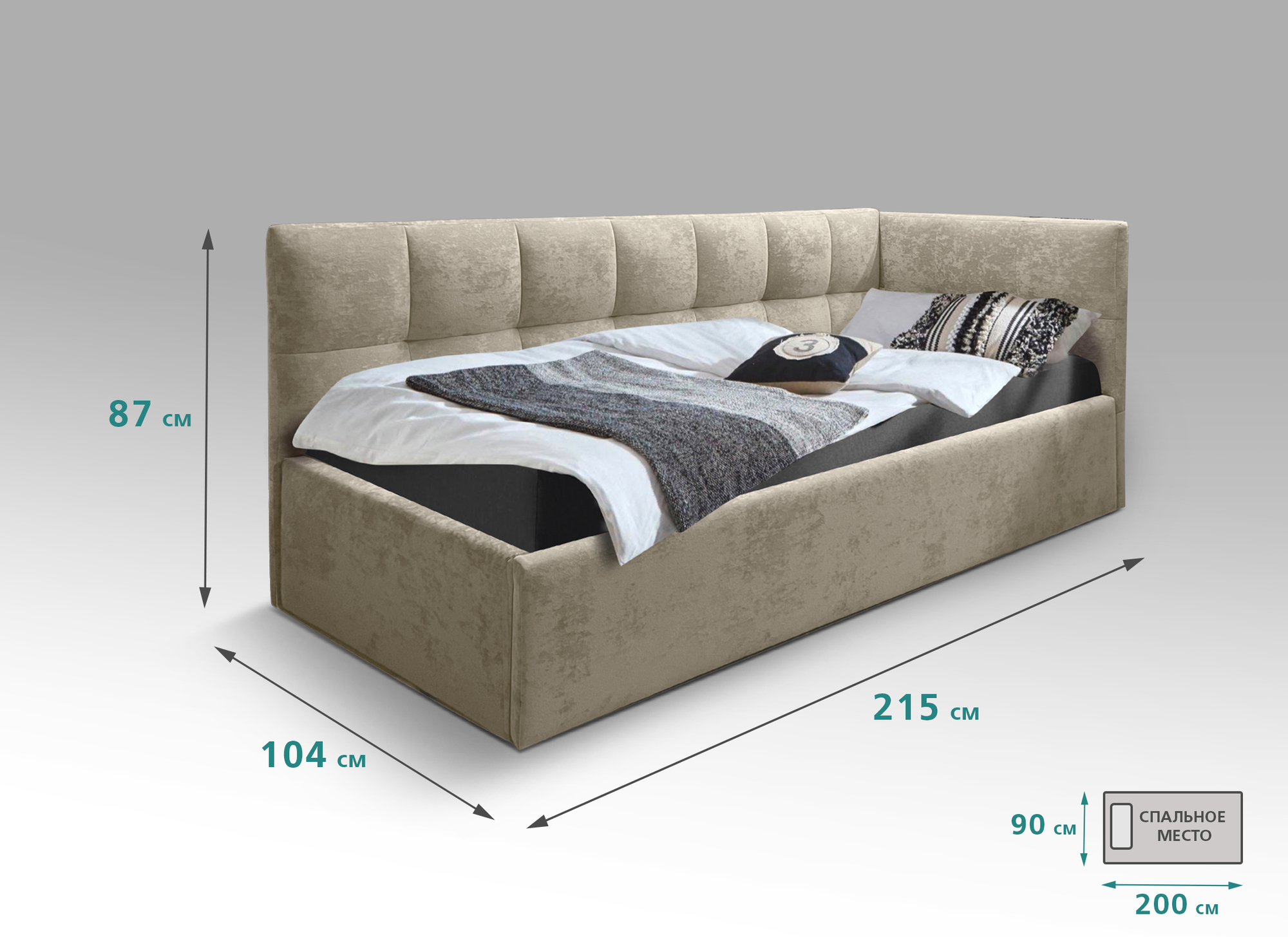 Кровать подростковая правая 900 Фрейм Клетка бежевый велюр