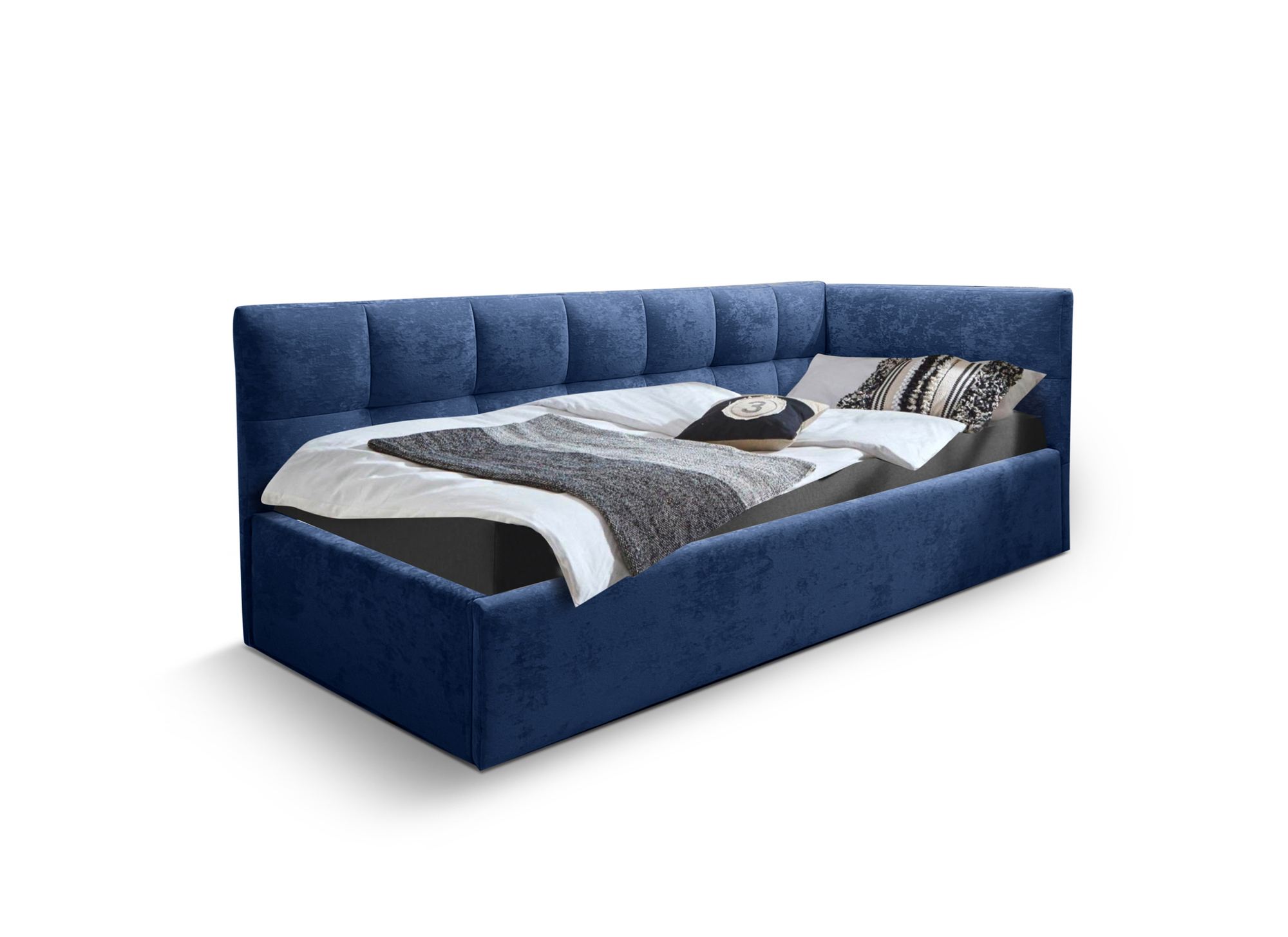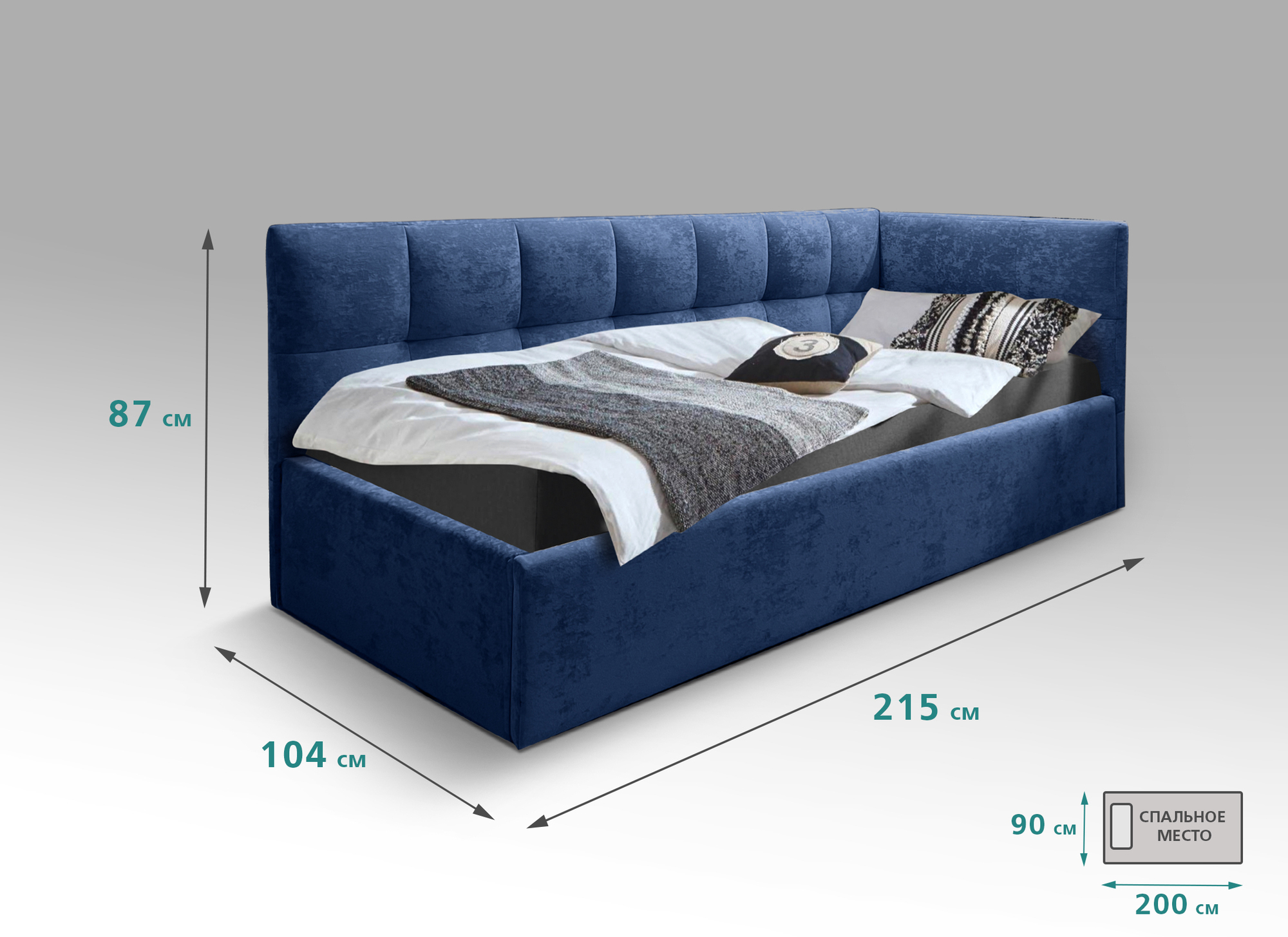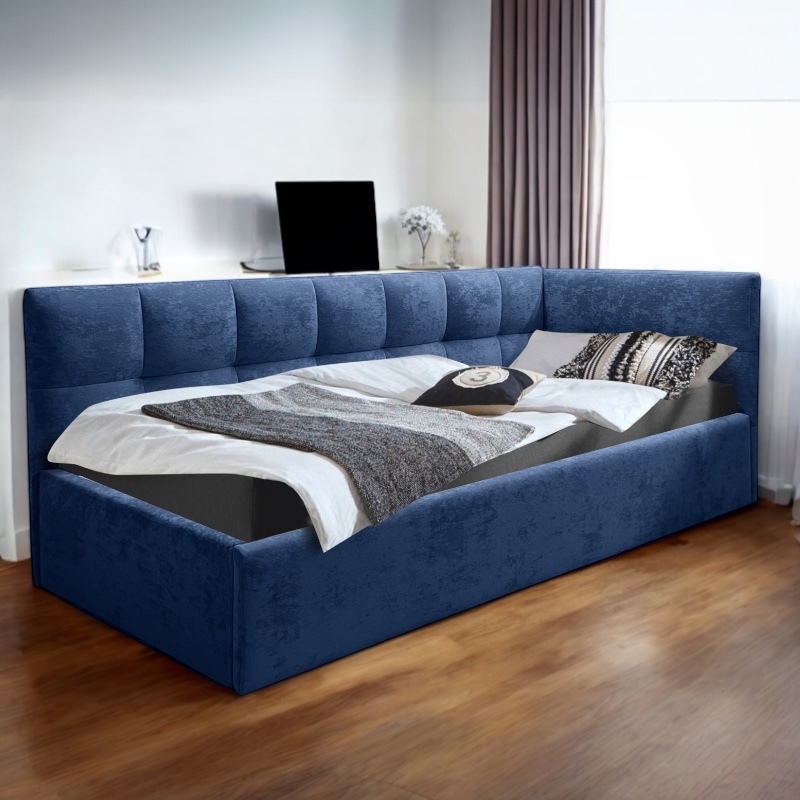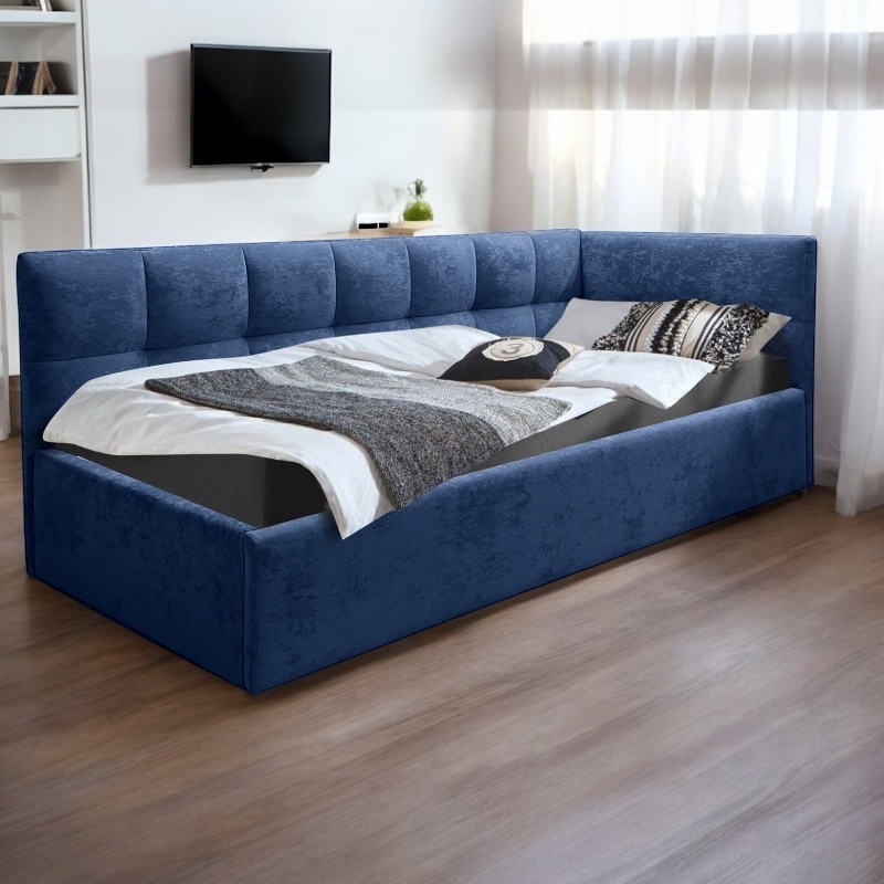 Кровать подростковая правая 900 Фрейм Клетка синий велюр