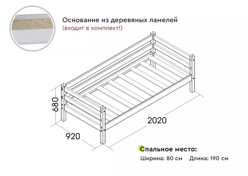 -Спальное место: 800х1900 мм