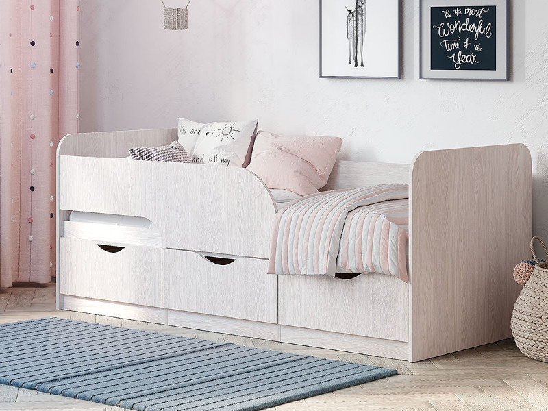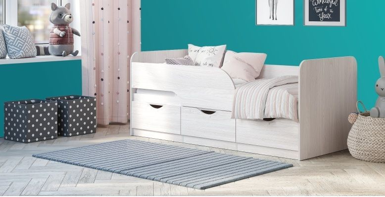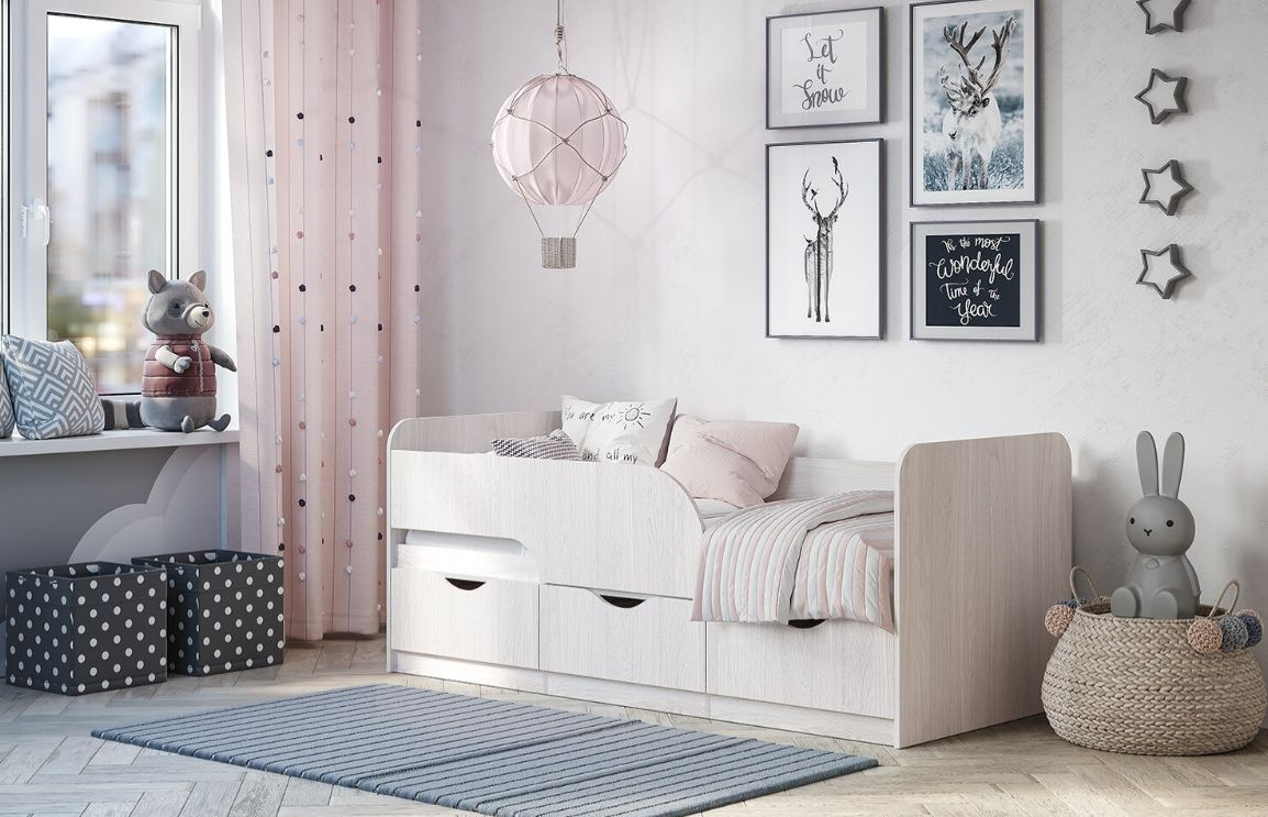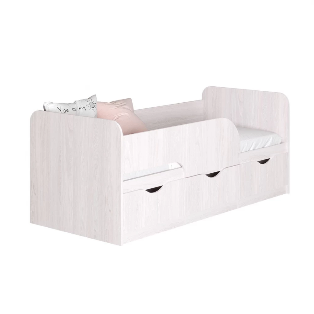 Кровать "Стандарт" станет правильным выбором для обустройства спального места ребенка дошкольного и младшего школьного возраста. Дизайн модели предусматривает защитный бортик, который обеспечит безопасность малышу во время сна. Наличие одного выдвижного ящика и двух секций с распашными створками позволит хранить в них игрушки или постельное белье. Отсутствие ножек облегчит вам уборку, так как под основанием не будет скапливаться пыль. Кровать выполнена в цвете белый ясень, а значит впишется в любую детскую.