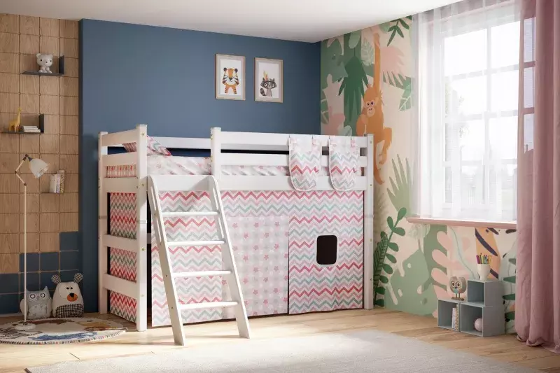 Вариант 6. Полувысокая Кровать "Соня" с наклонной лестницей - один из примеров идеального сочетания практичности, оригинальности и долговечности. Цветовое исполнение подходит сразу для нескольких стилей, а габариты - для комнат разной площади. Мебель для детской создается из безопасных материалов с отличной износостойкостью.