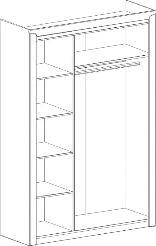 Трехдверный шкаф "Соренто" с зеркалом отлично подойдет для спальни или прихожей и станет прекрасным дополнением к вашему интерьеру. На боковых дверях имеются декоративные вырезы, выполняющие функцию ручек. Внутреннее пространство шкафа разделено стенкой на два отделения: с полками и продольной стальной штангой, над которой размещается щитовая полка.