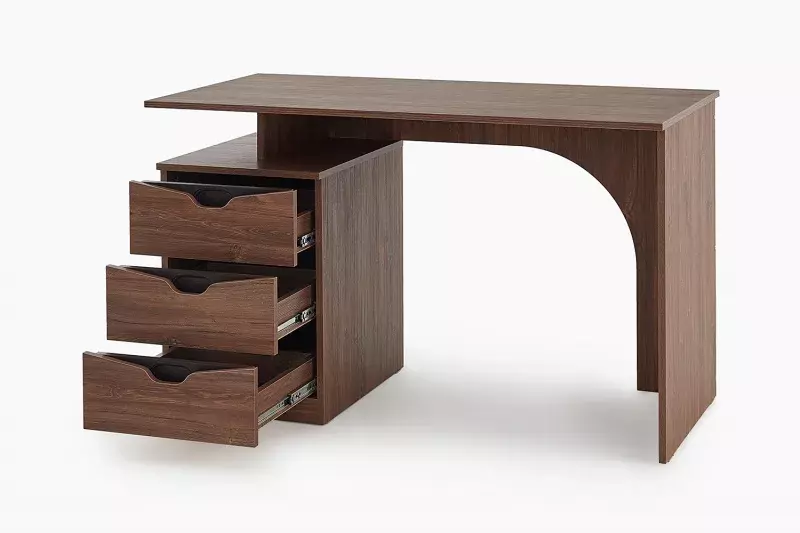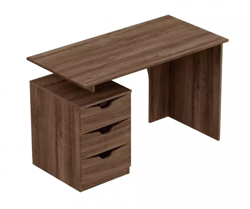 Стол изготовлен из качественных, безопасных материалов, что гарантирует его надежность и долговечность. Он оснащен тумбой с тремя ящиками, которые идеально подходят для хранения документов и канцелярских принадлежностей. Также на столе есть место для монитора компьютера и клавиатуры.