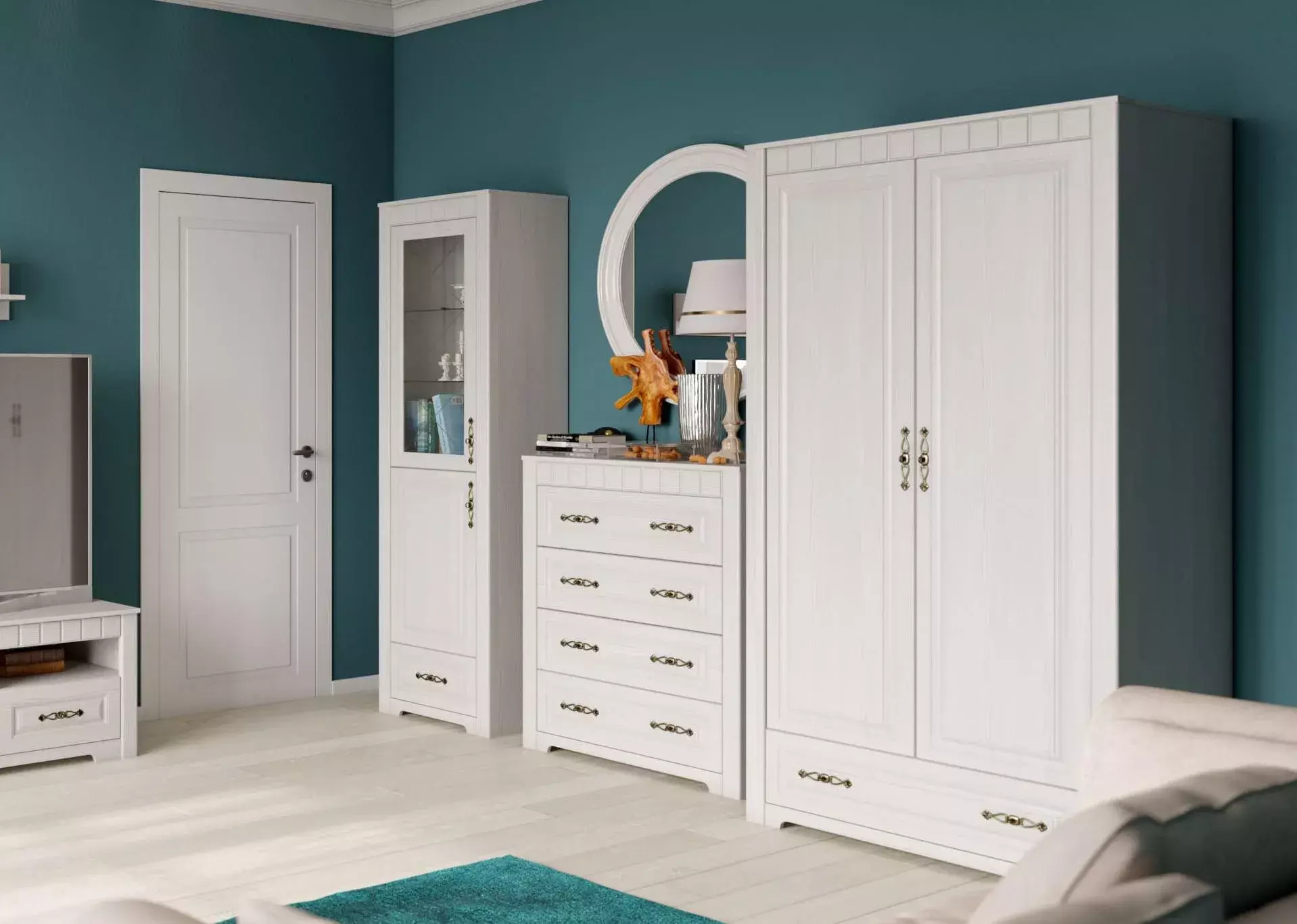 Комод для спальни из серии "Прованс" состоит из четырех выдвижных ящиков на шариковых направляющих глубиной 350 мм.