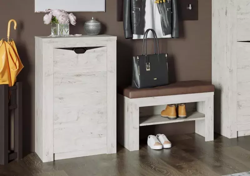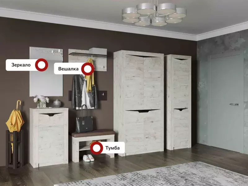 Прихожая "Соренто" представляет собой стильное и функциональное решение для вашего дома. На фасадах имеются декоративные вырезы, выполняющие функцию ручек.