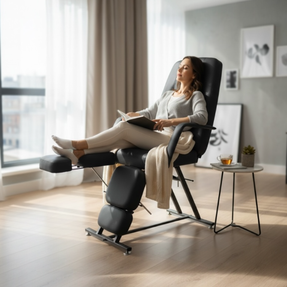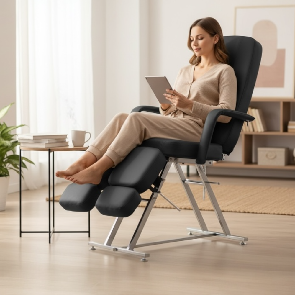 -Спинная и ножные части имеют стопорные механизмы, позволяющие отрегулировать и установить нужный угол наклона.