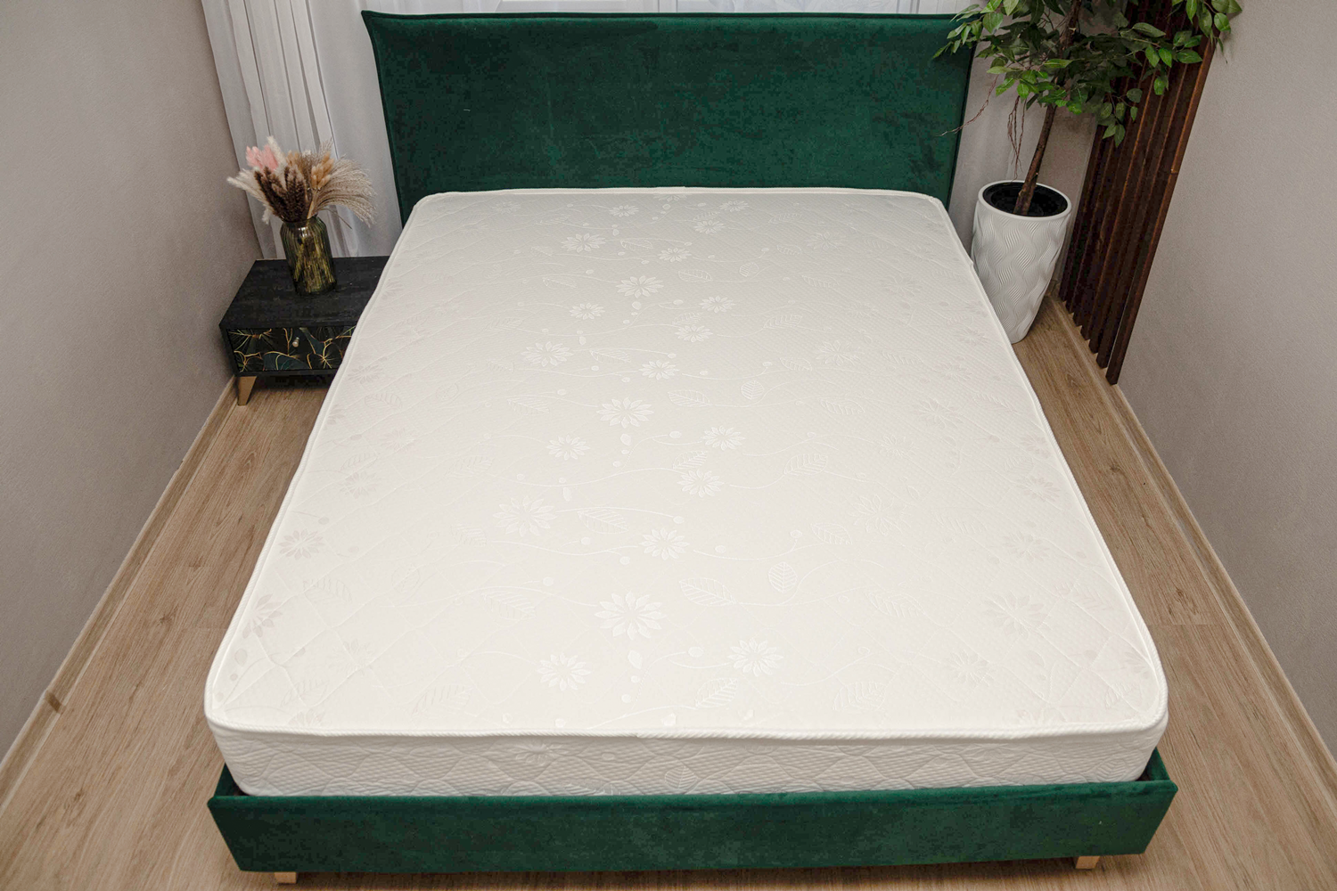 Этот матрас имеет среднюю толщину и подходит к большинству типов кроватей.