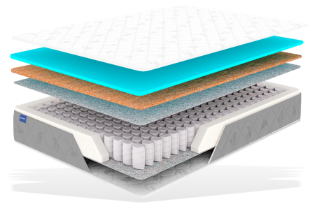 Матрас Sorento имеет базовый состав. Сочетание слоев комфортной пены и кокосовой койры обеспечат среднюю степень жесткости, независимый пружинный блок TFK оказывает равномерное распределение нагрузки, а нежнейший чехол из стеганного трикотажа подарит комфорт и дополнительную мягкость. Боковая часть матраса изготавливается из мебельного жаккарда, что придает не только красивый внешний вид, но и защищает матрас от истирания об царги кровати.