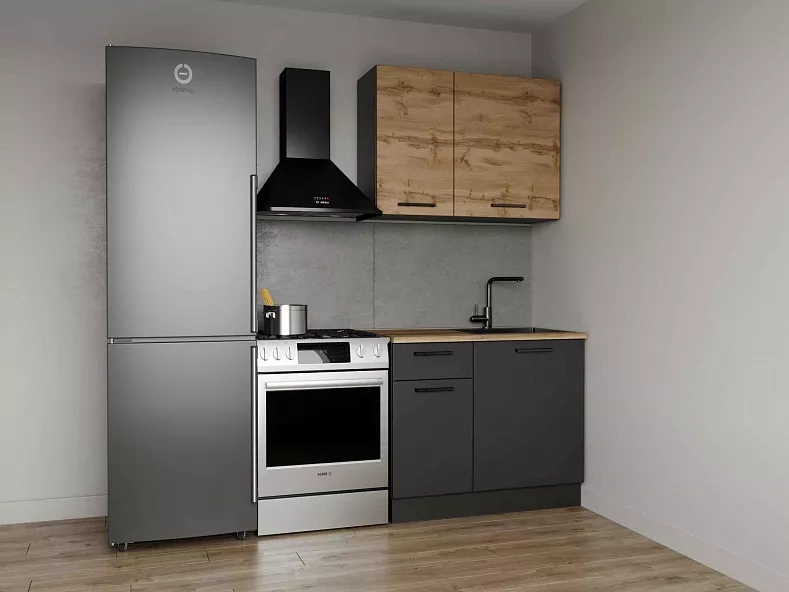 Модули первого верхнего яруса с фасадами со свесом 12 мм, что позволяет открывать их без установленных ручек.
