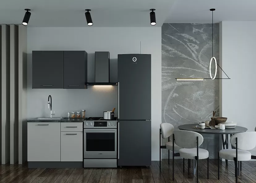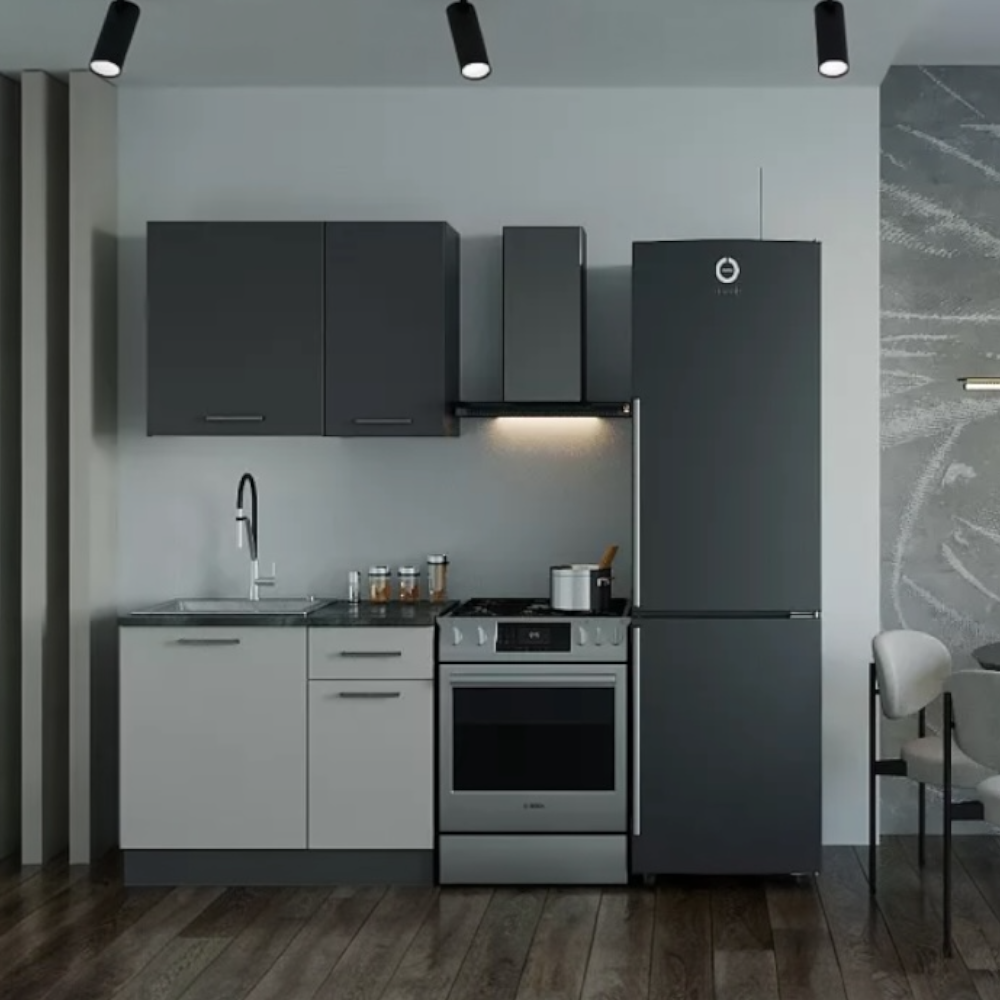 Модули первого верхнего яруса с фасадами со свесом 12 мм, что позволяет открывать их без установленных ручек.