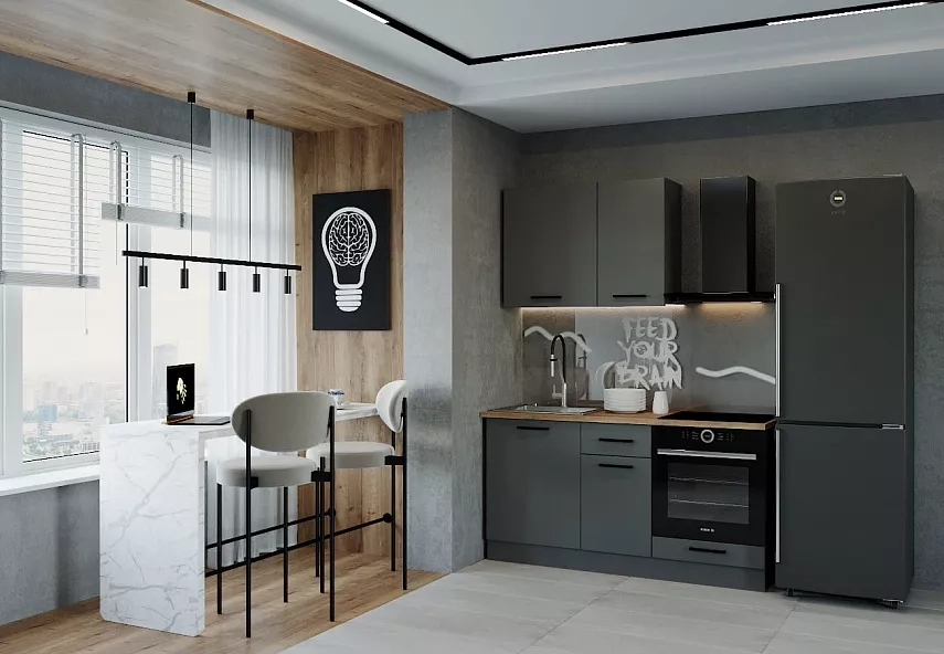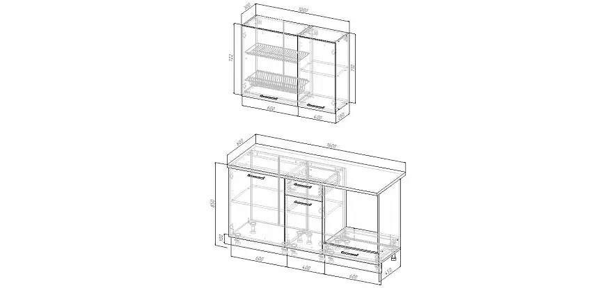 Фасады верхних модулей со свесом 12 мм дают возможность использовать без установки ручек.