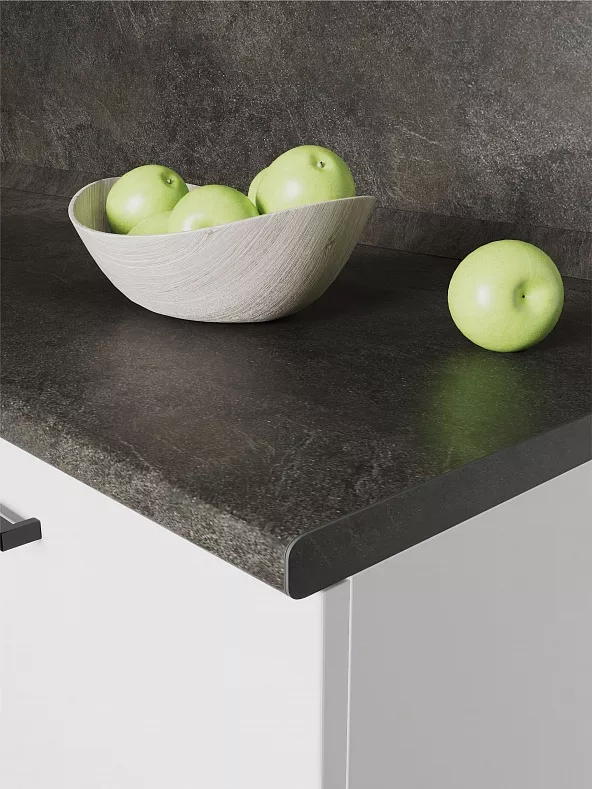 Столещницы цельные с пластиковым покрытием со скруглением по переднему краю (постформинг толщина 26/38 мм).