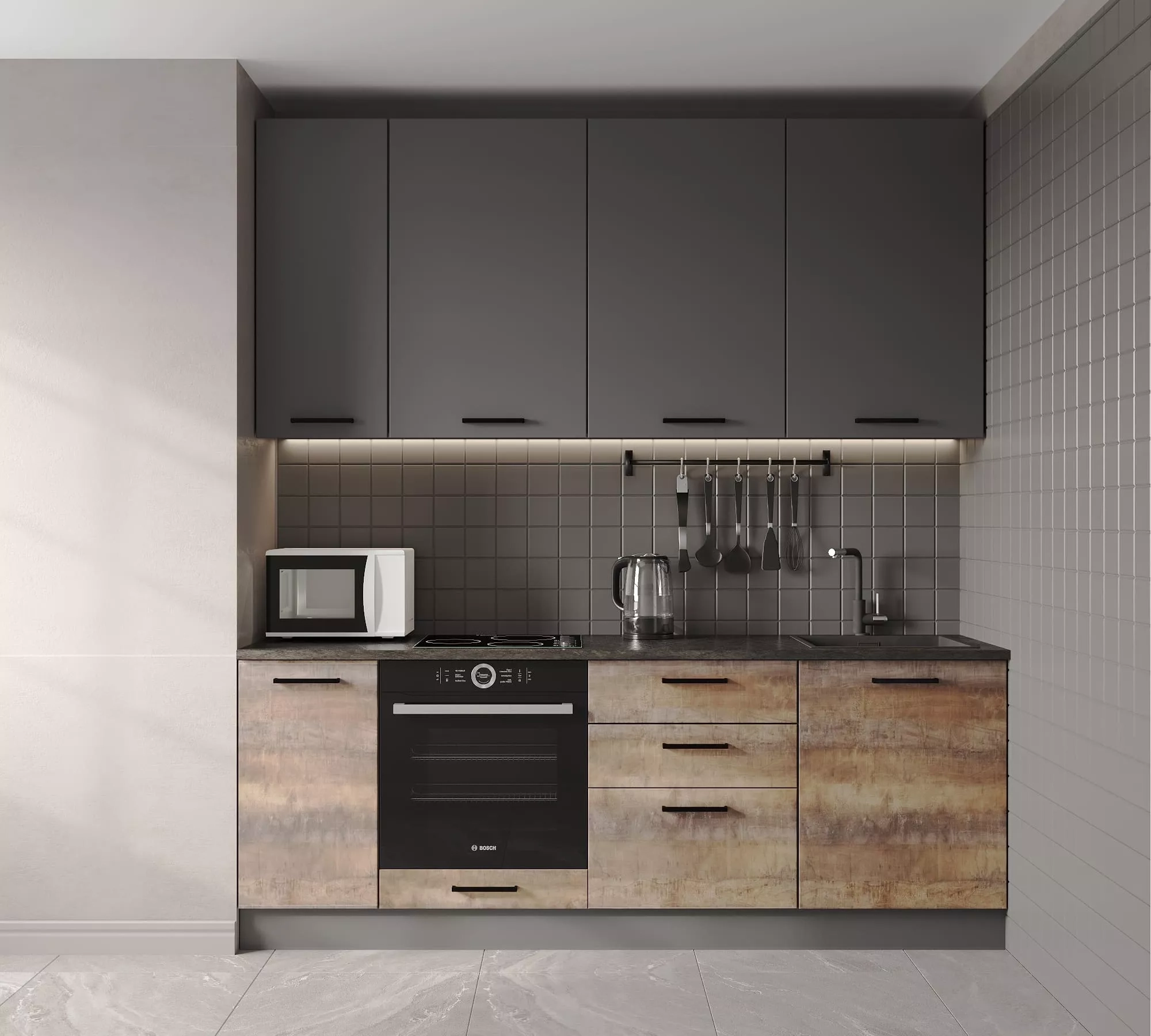 Фасады верхних модулей со свесом 12 мм дают возможность использовать без установки ручек.