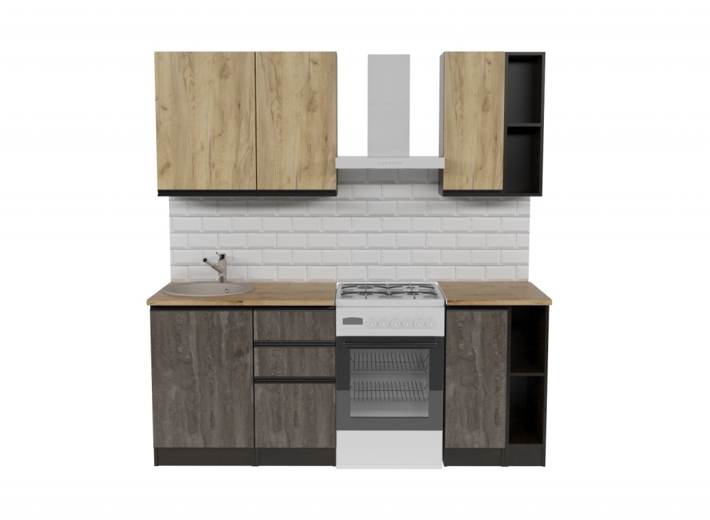 Мойка, смеситель, стеновая панель и посудосушитель в комплект гарнитура не входят.