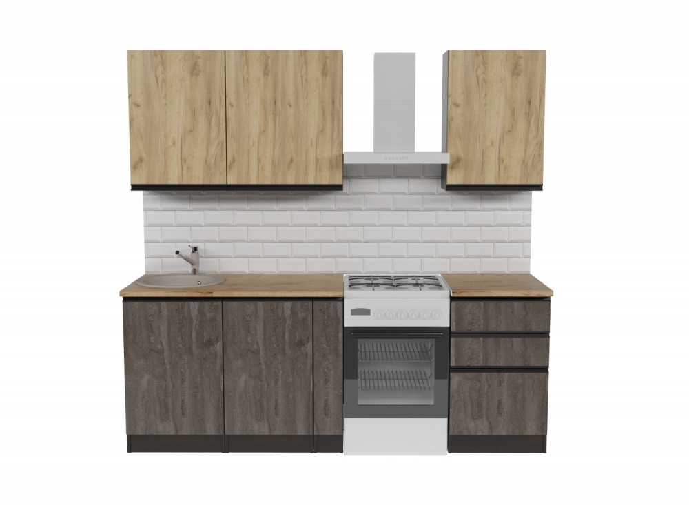 Мойка, смеситель, стеновая панель и посудосушитель в комплект гарнитура не входит.