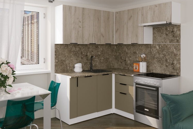 Основное преимущество этой кухни заключается в ее модульной структуре. Напольные и подвесные шкафы предлагают достаточно места для хранения всех необходимых кухонных принадлежностей. Гарнитур состоит из набора шкафов, которые легко комбинируются между собой, позволяя создавать индивидуальные комбинации, отвечающие вашим требованиям и вкусовым предпочтениям. Ящики, полки, навесные шкафы, тумбы и пеналы можно свободно перемещать, формируя удобное и практичное рабочее пространство.