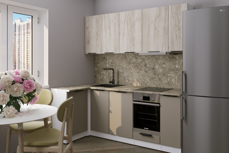 Основное преимущество этой кухни заключается в ее модульной структуре. Напольные и подвесные шкафы предлагают достаточно места для хранения всех необходимых кухонных принадлежностей. Гарнитур состоит из набора шкафов, которые легко комбинируются между собой, позволяя создавать индивидуальные комбинации, отвечающие вашим требованиям и вкусовым предпочтениям. Ящики, полки, навесные шкафы, тумбы и пеналы можно свободно перемещать, формируя удобное и практичное рабочее пространство.