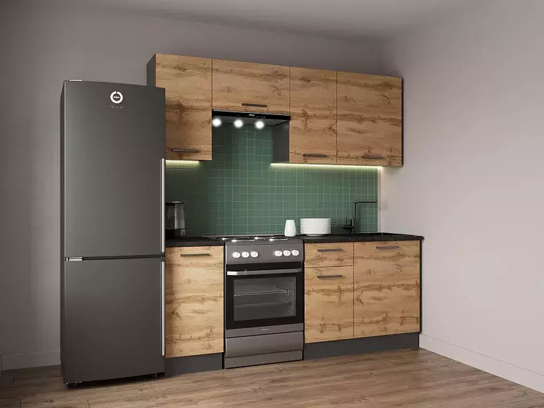 Фасады верхних модулей со свесом 12 мм дают возможность использовать без установки ручек.