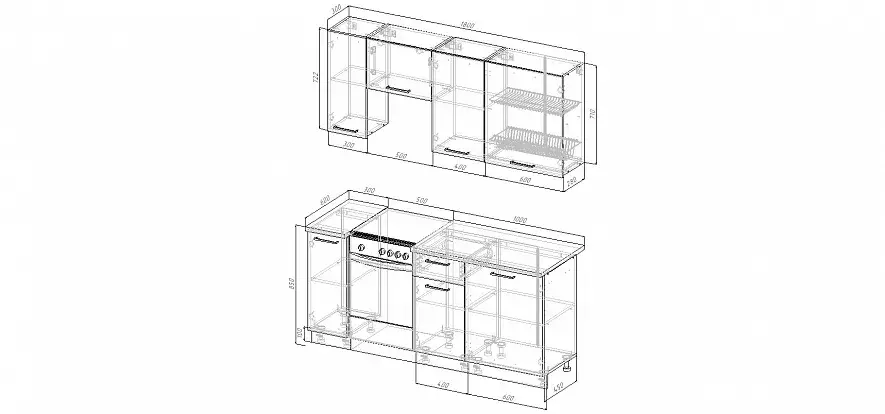 Фасады верхних модулей со свесом 12 мм дают возможность использовать без установки ручек.