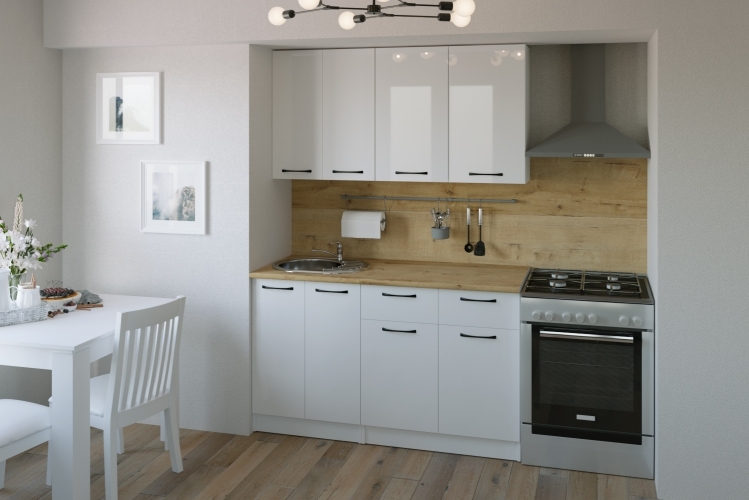 Прямые готовые кухни рациональны для маленьких квартир. При прямой планировке кухни важно предусмотреть место для холодильника и учесть его габариты. Если ваша кухня объединена с гостиной, или же настолько просторная, что позволяет сделать полноценную обеденную зону для большой семьи, то смело выбирайте линейную конфигурацию кухни.