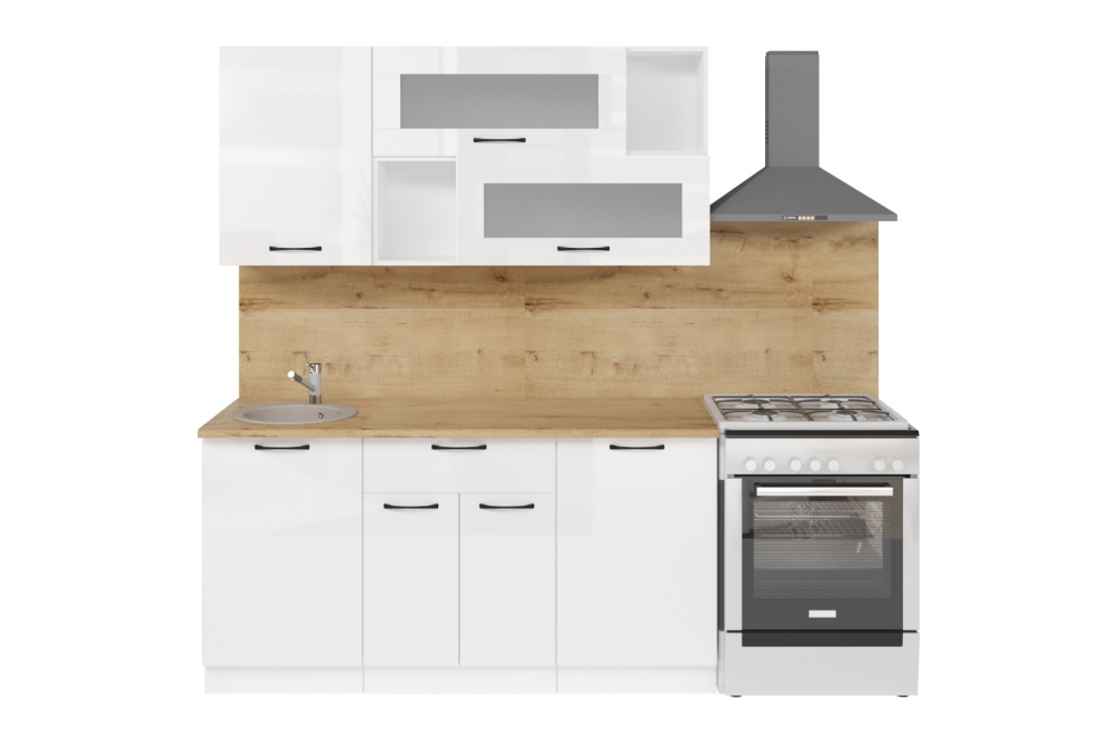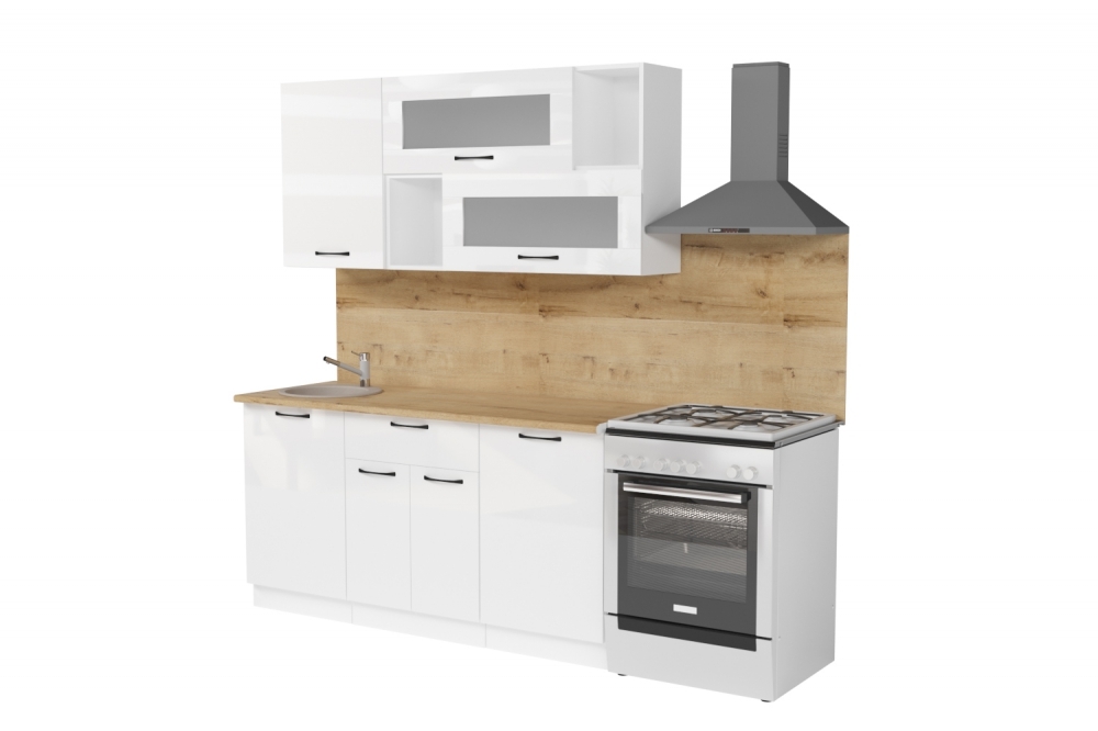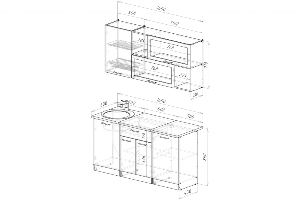 Мойка, смеситель, стеновая панель и посудосушитель в комплект гарнитура не входят.