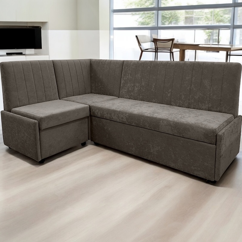 Диван угловой на кухню Призма Страйп коричневый велюр