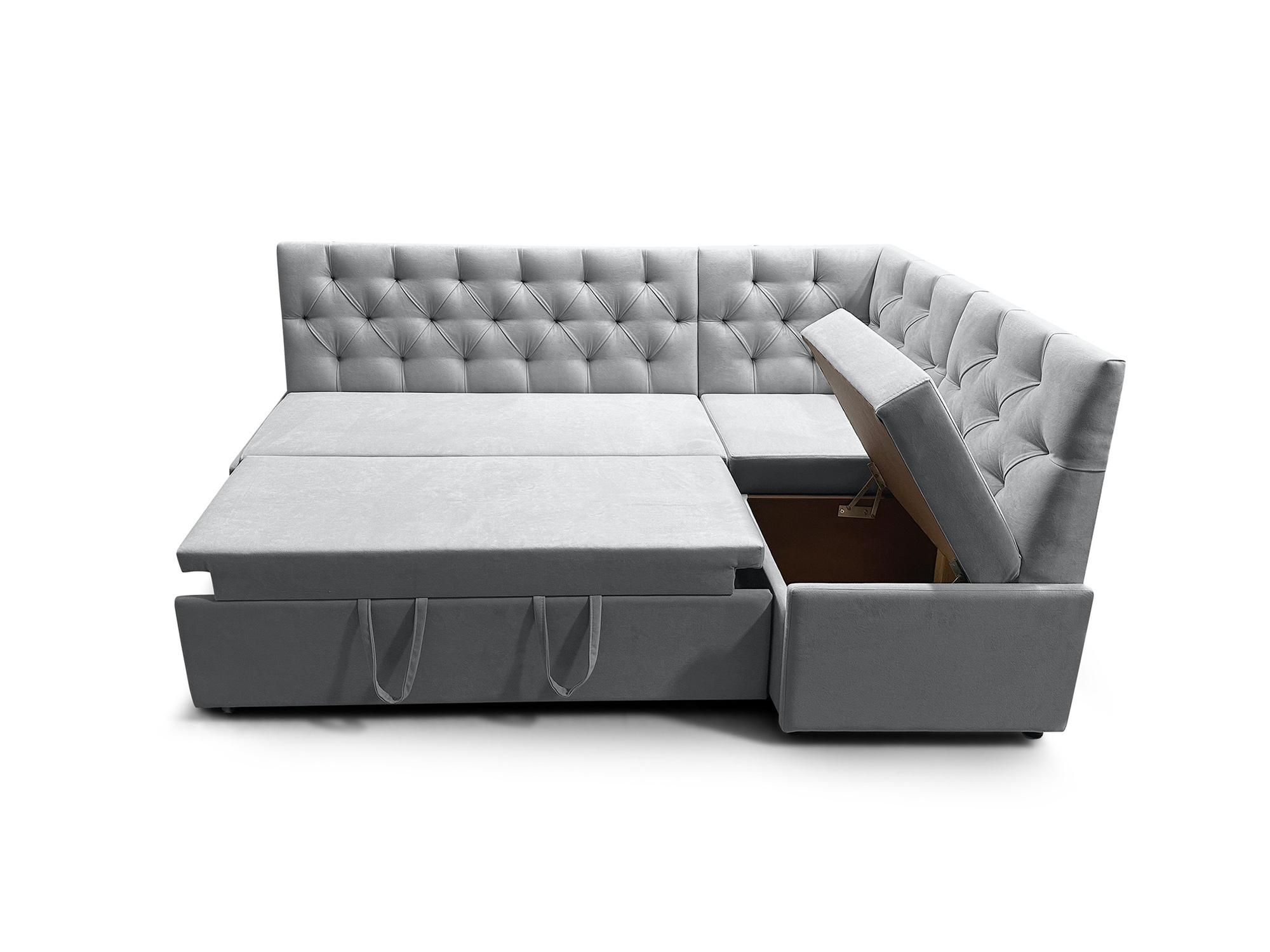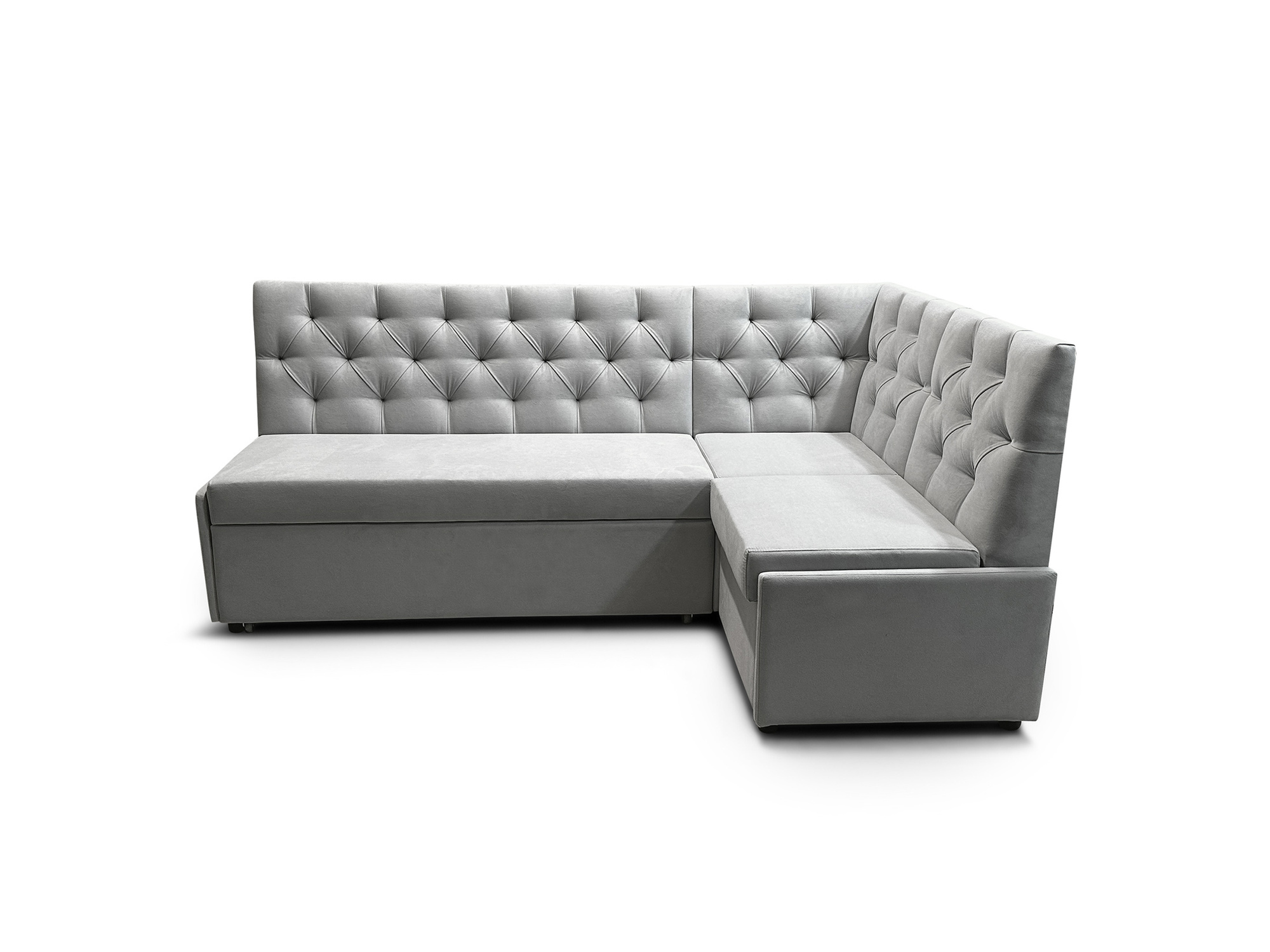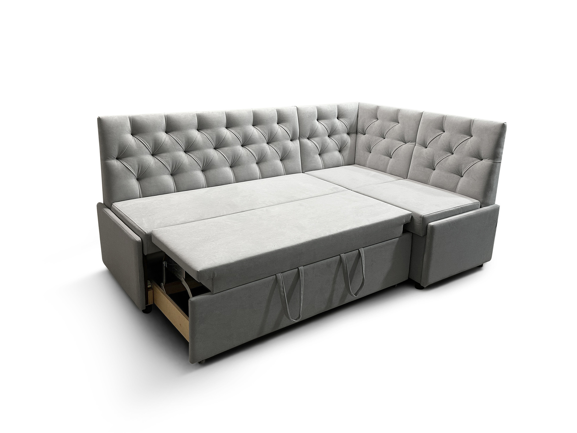 Диван угловой со спальным местом Призма каретная стяжка серый