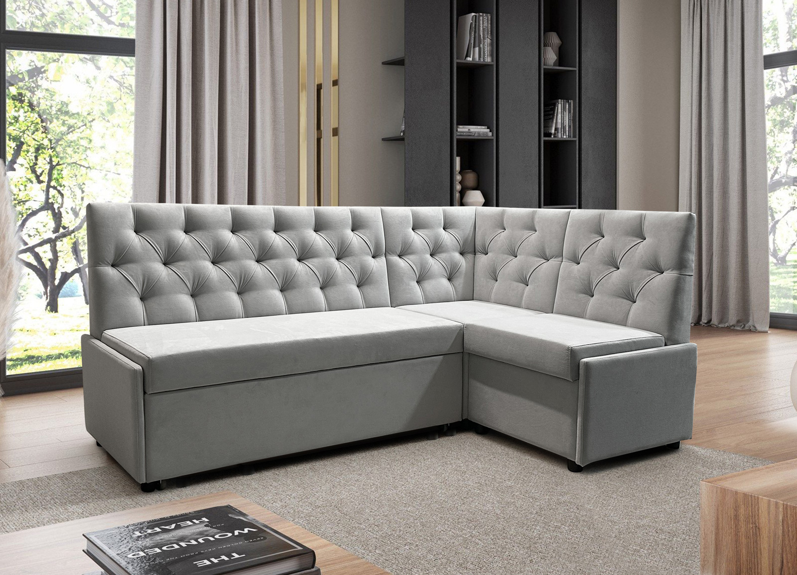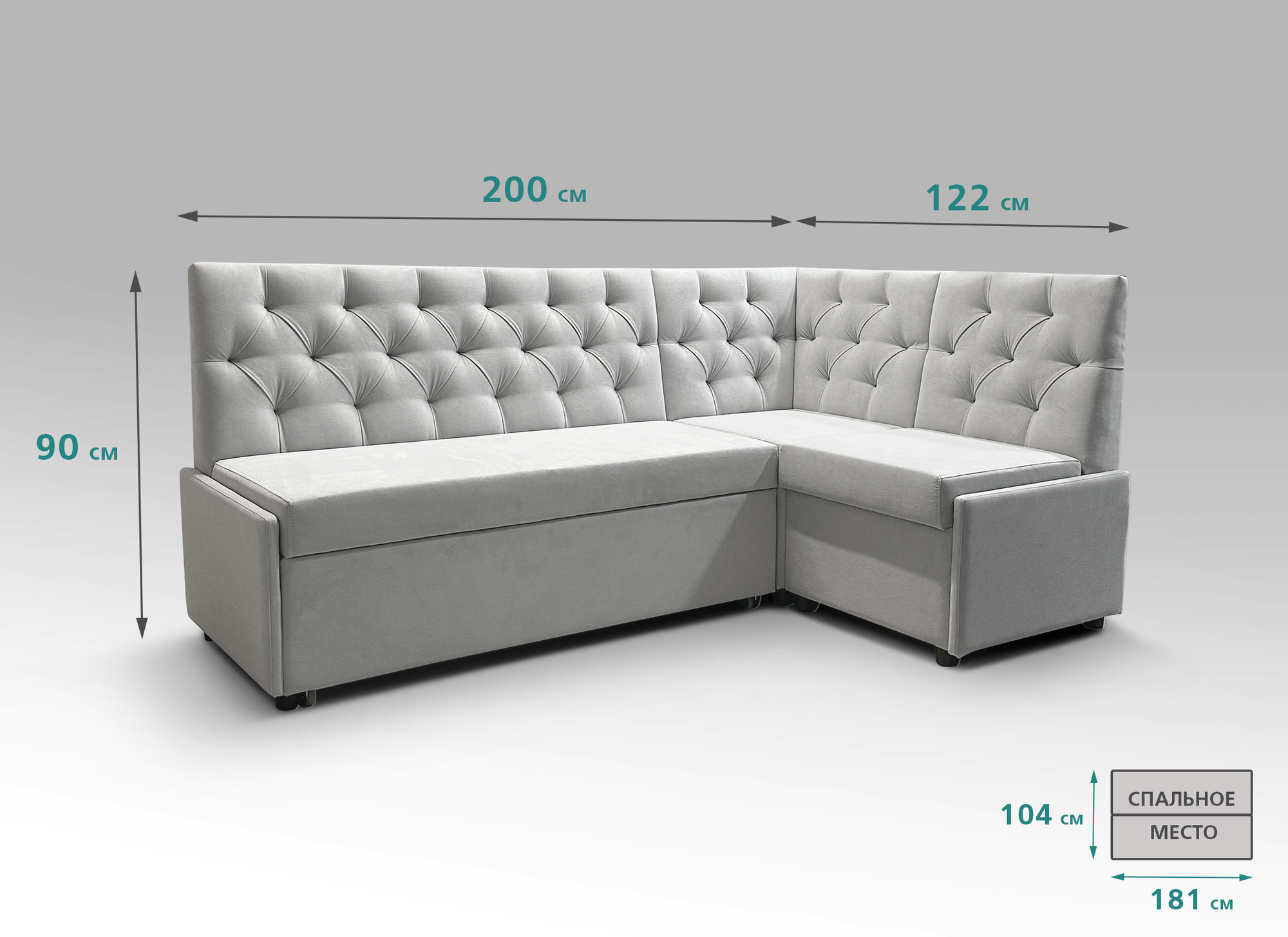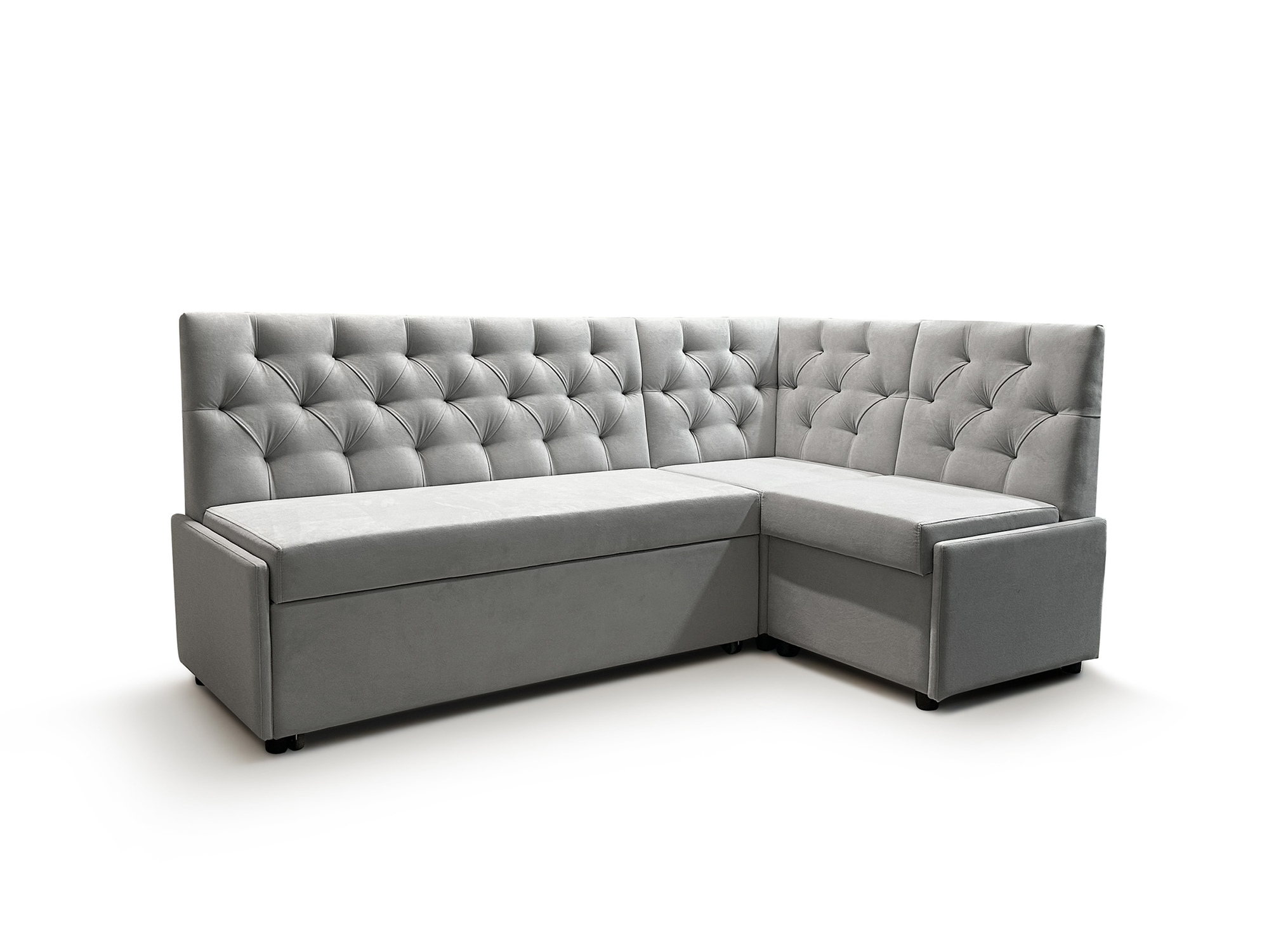 Диван угловой со спальным местом Призма каретная стяжка серый