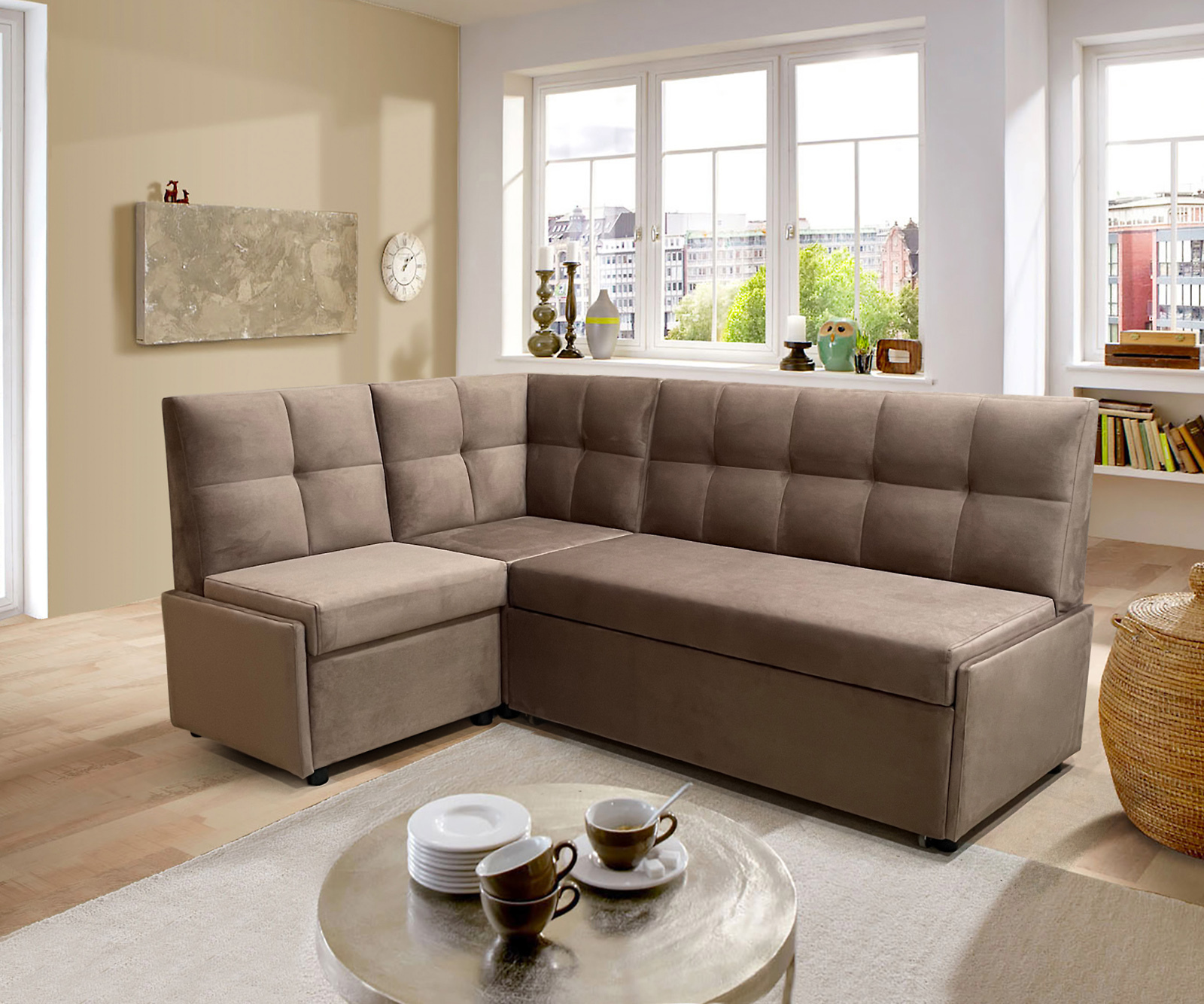 Угловой диван со спальным местом Призма Клетка коричневый