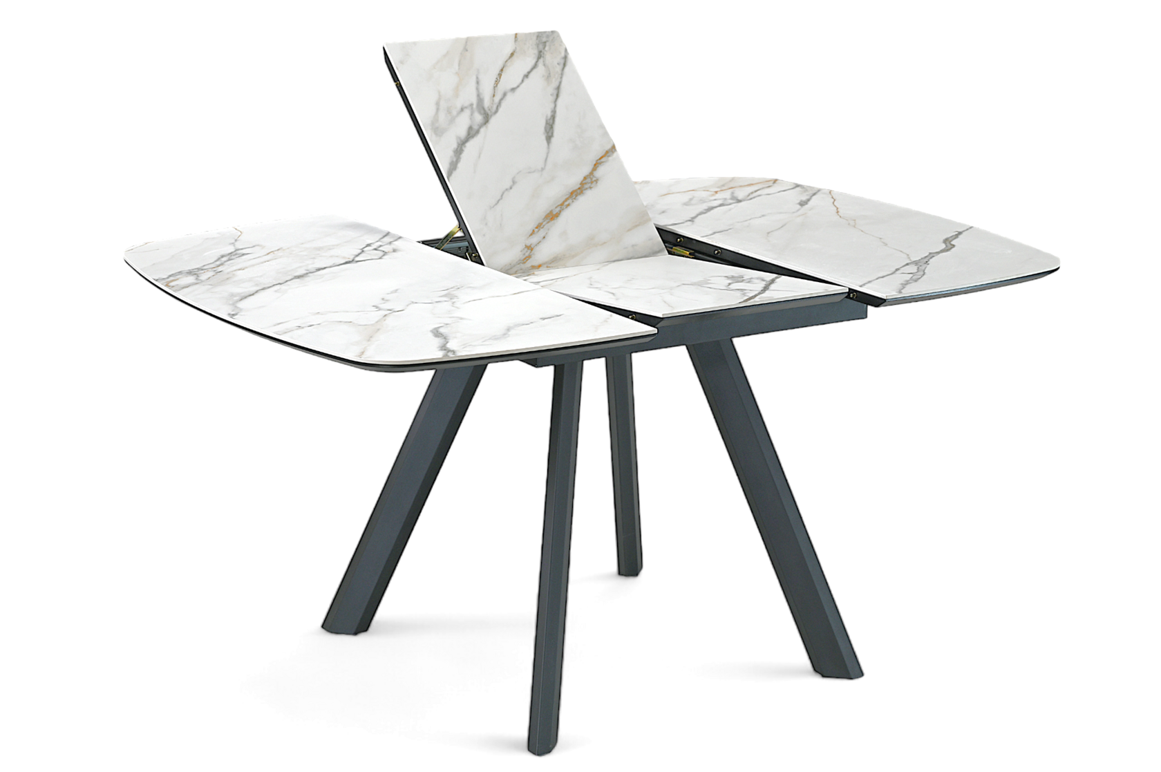 Раздвижной квадратный стол. Столешница выполнена из ЛМДФ и покрыта пленкой ПВХ с керамогранитом.