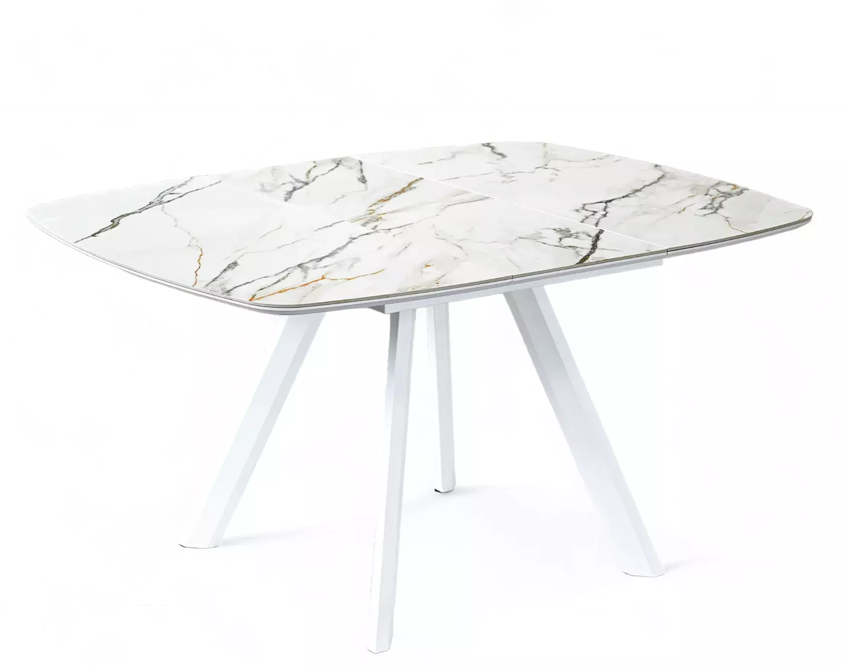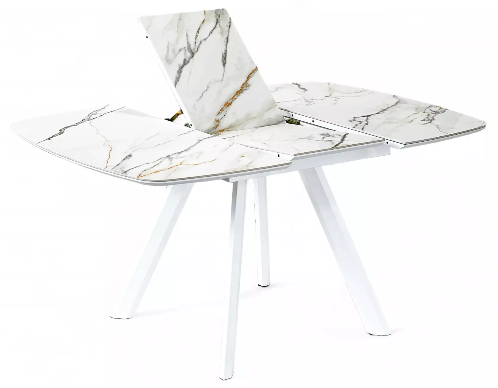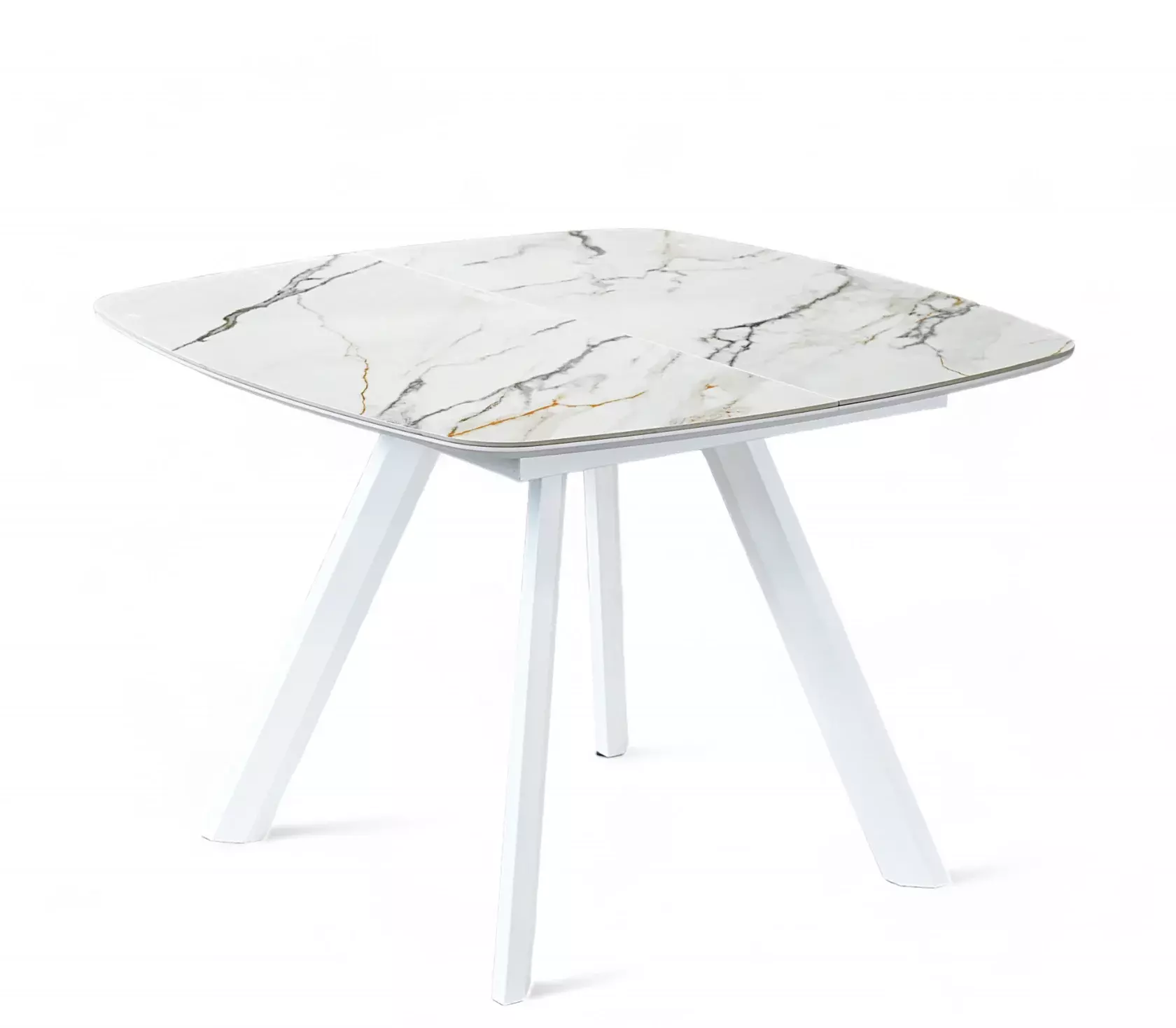 Раздвижной квадратный стол. Столешница выполнена из ЛМДФ и покрыта пленкой ПВХ с керамогранитом.