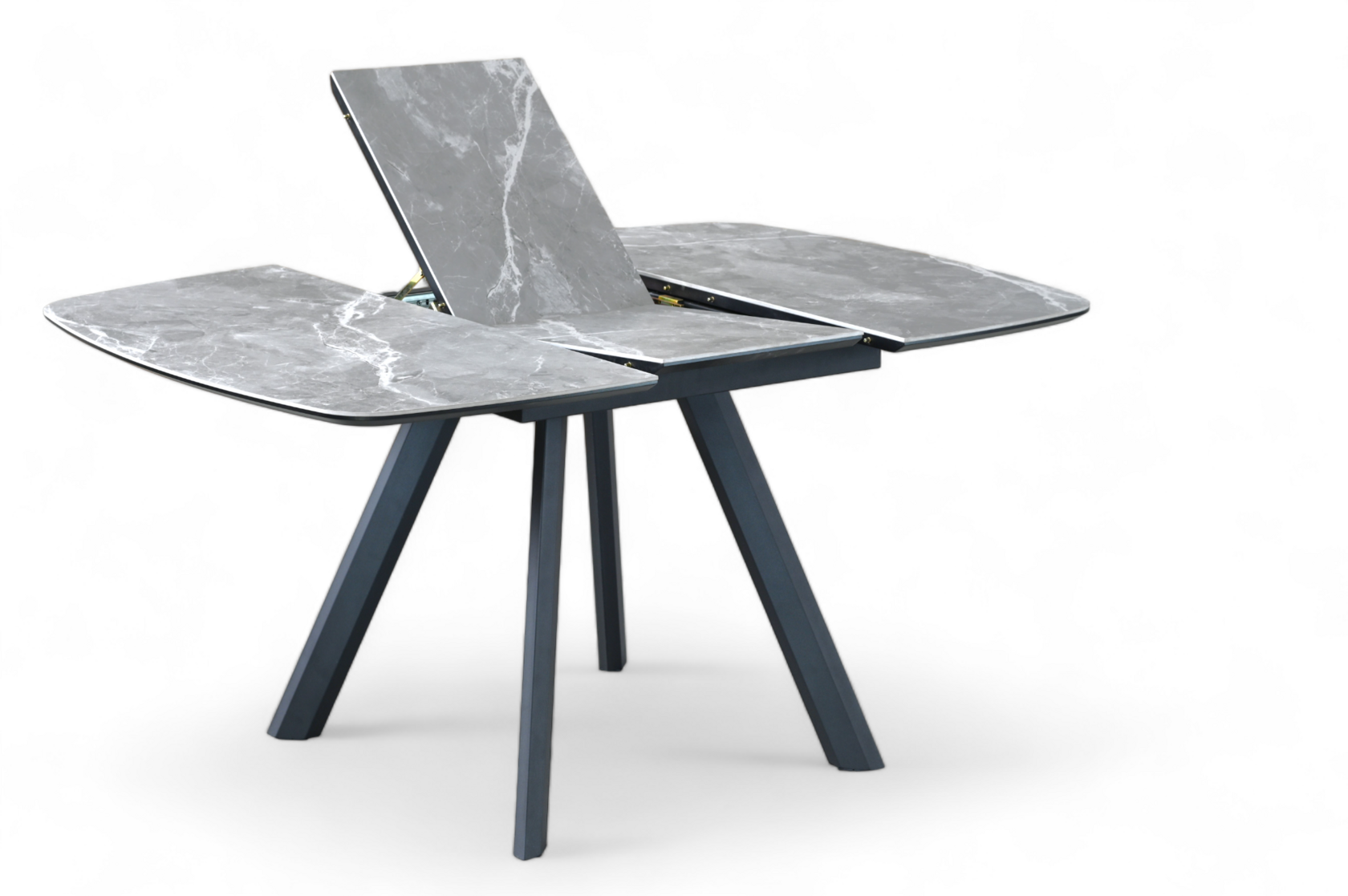 Раздвижной квадратный стол. Столешница выполнена из ЛМДФ и покрыта пленкой ПВХ с керамогранитом.