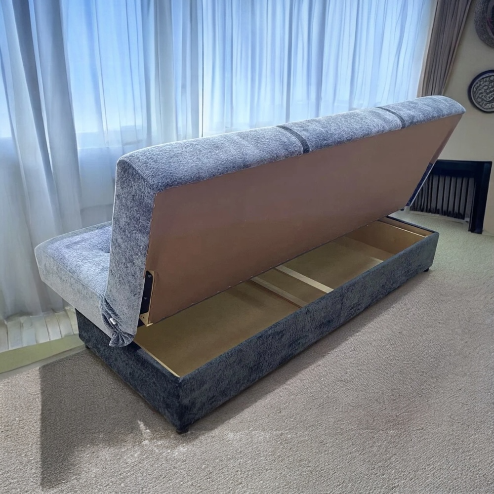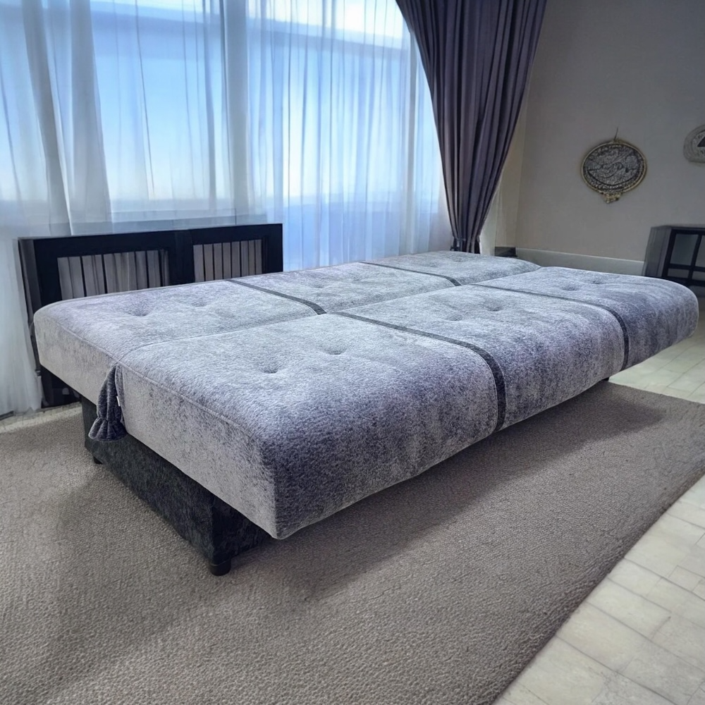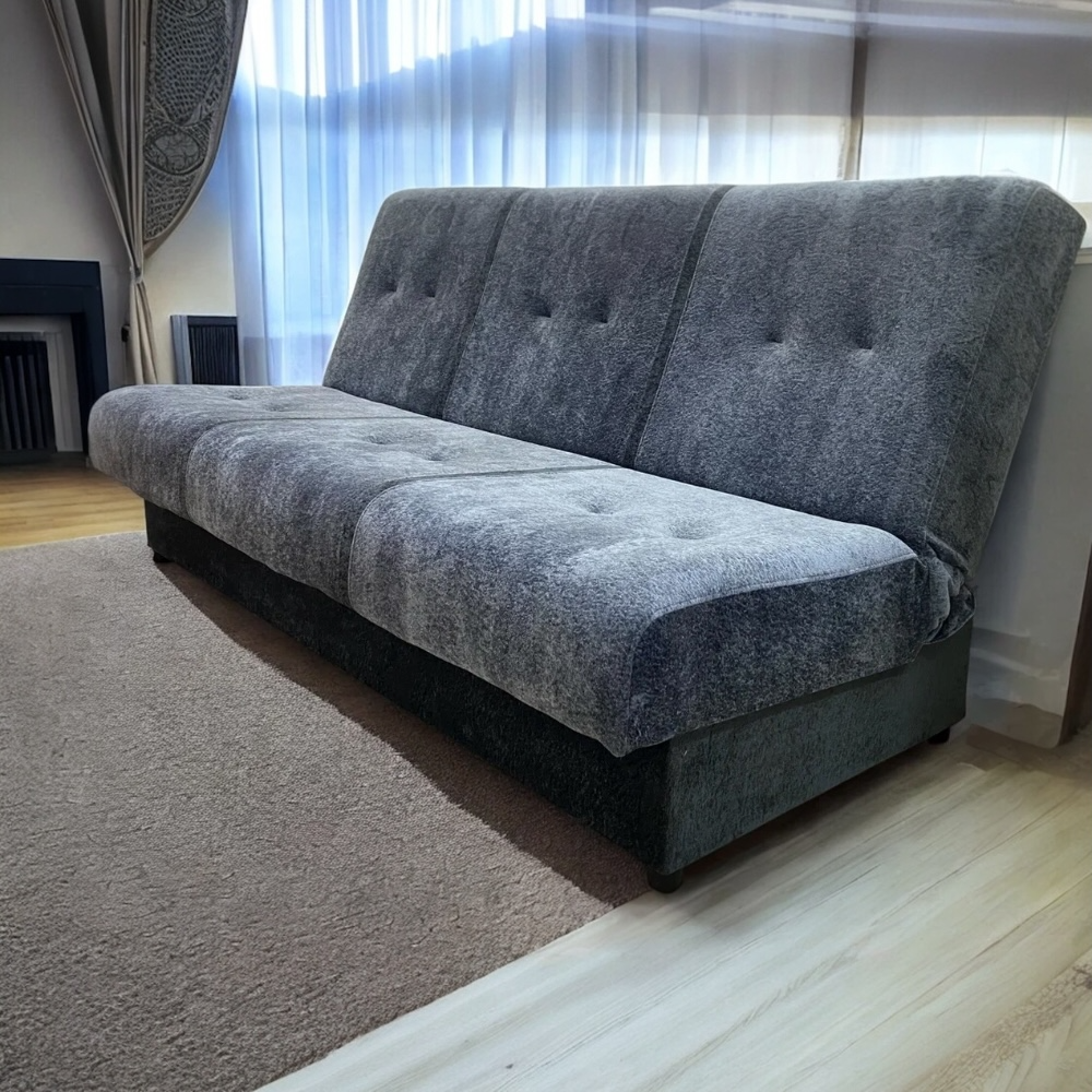 Высокая спинка удобна для сидения, легкий доступ к вместительному коробу для постельных принадлежностей. Компактный и не дорогой диван.