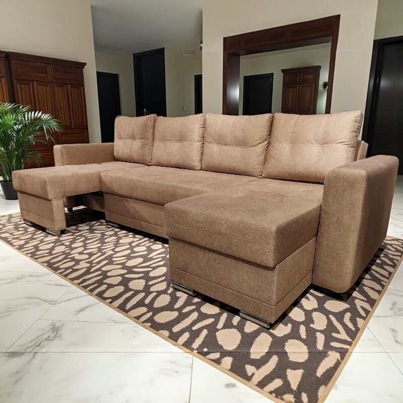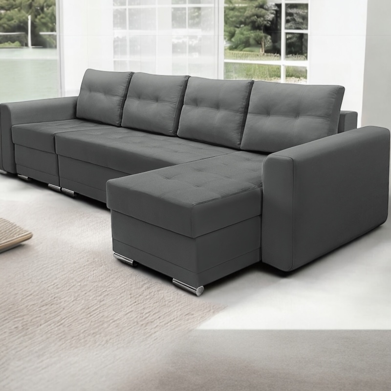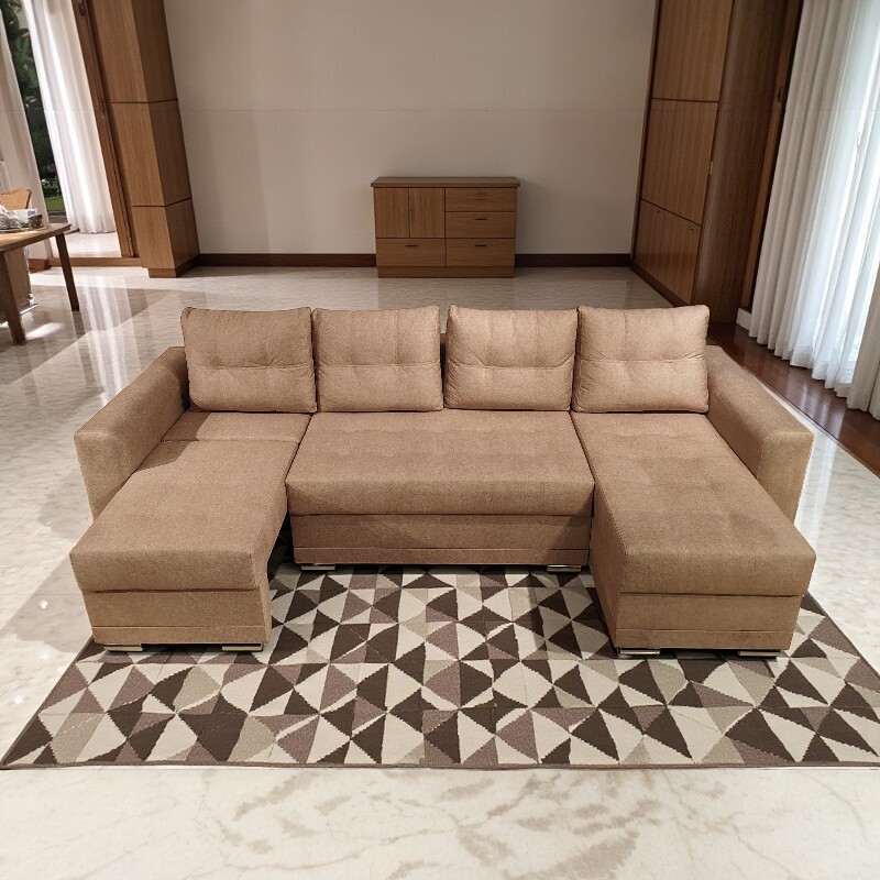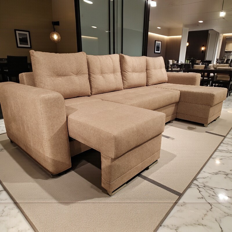 -Универсальный трансформер: У дивана три положения: угловой, п-образный, прямое спальное место.