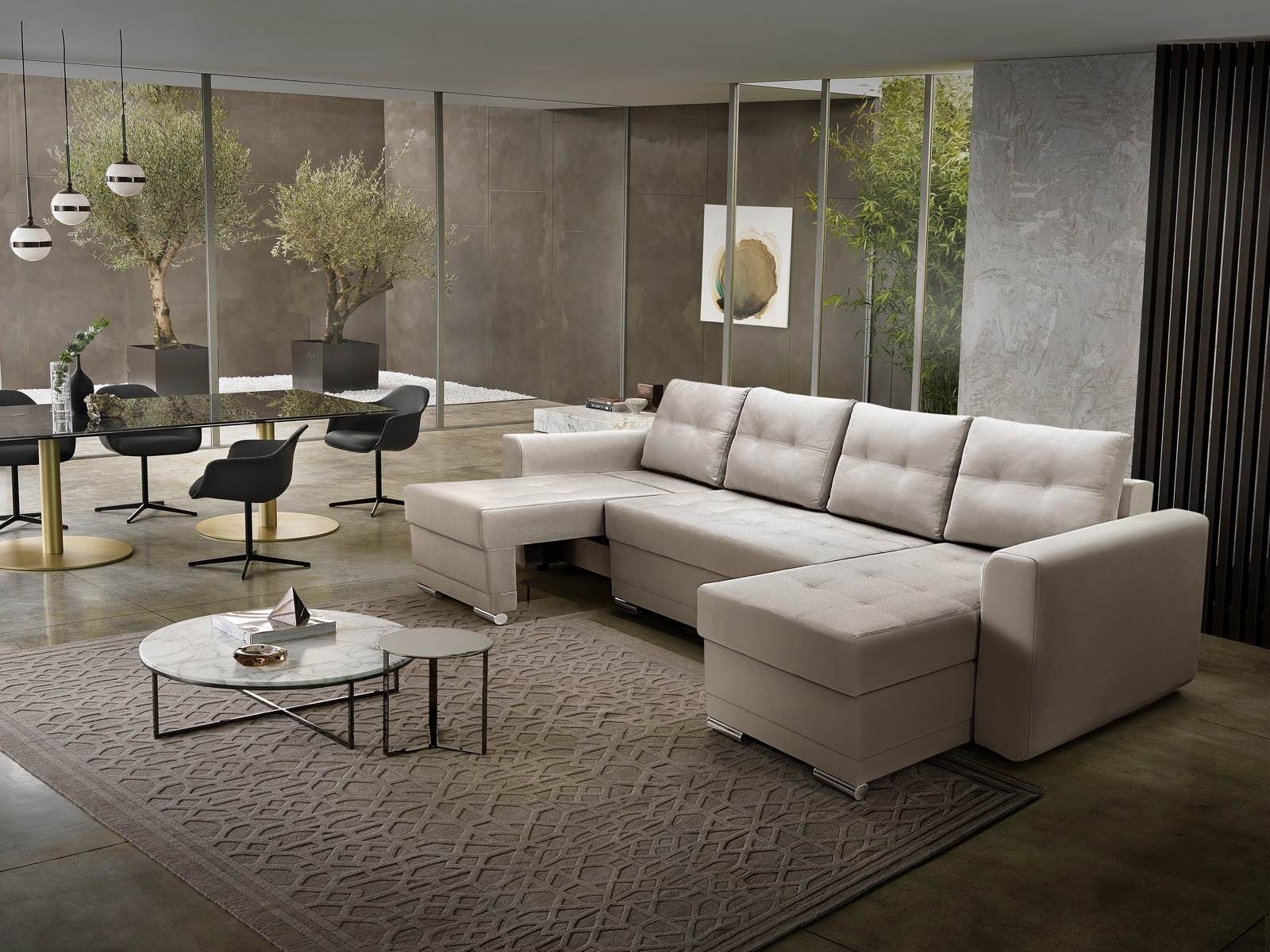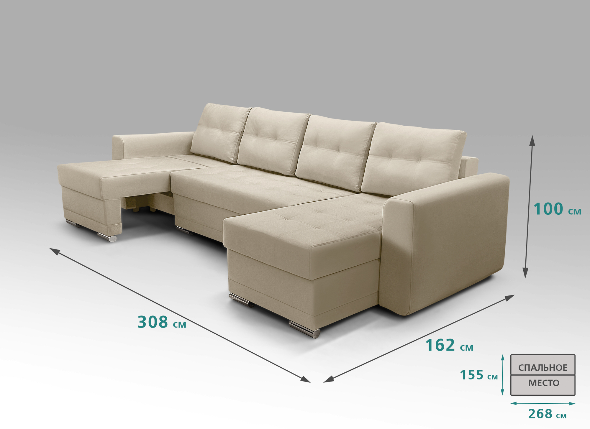 -Универсальный трансформер: У дивана три положения: угловой, п-образный, прямое спальное место.