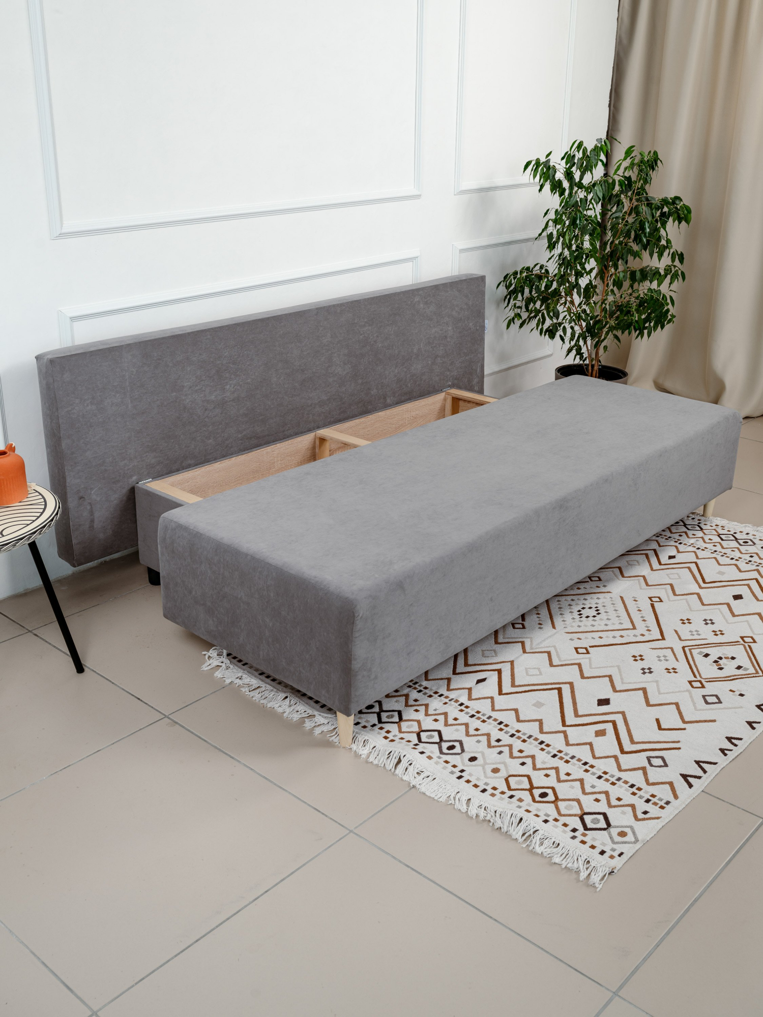 Прямой диван-кровать Genry с ящиком - это раскладной диван, который сочетает в себе элегантный дизайн и практичность. Встроенный ящик для хранения позволит с легкостью организовать пространство, а раскладной механизм евро книжка превратит диван в удобное спальное место.