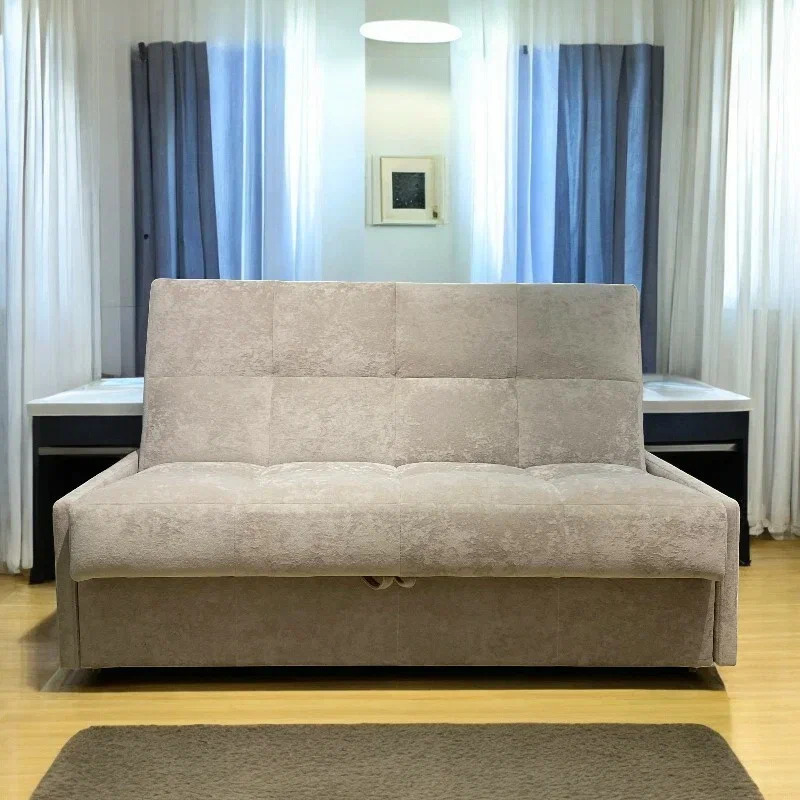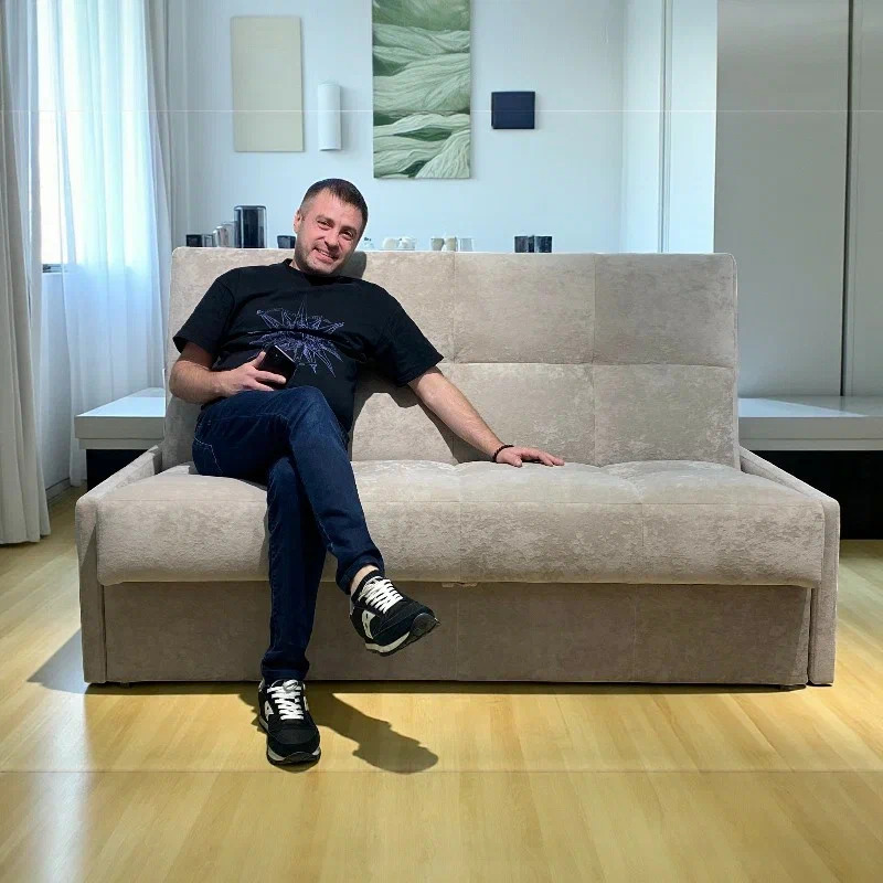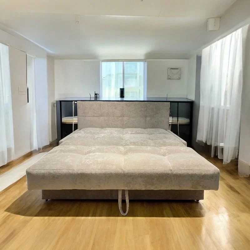 Компактный диван быстро превращается в ровное спальное место. Также диван "Рэй" имеет вместительный ящик для хранения белья и постельных принадлежностей.