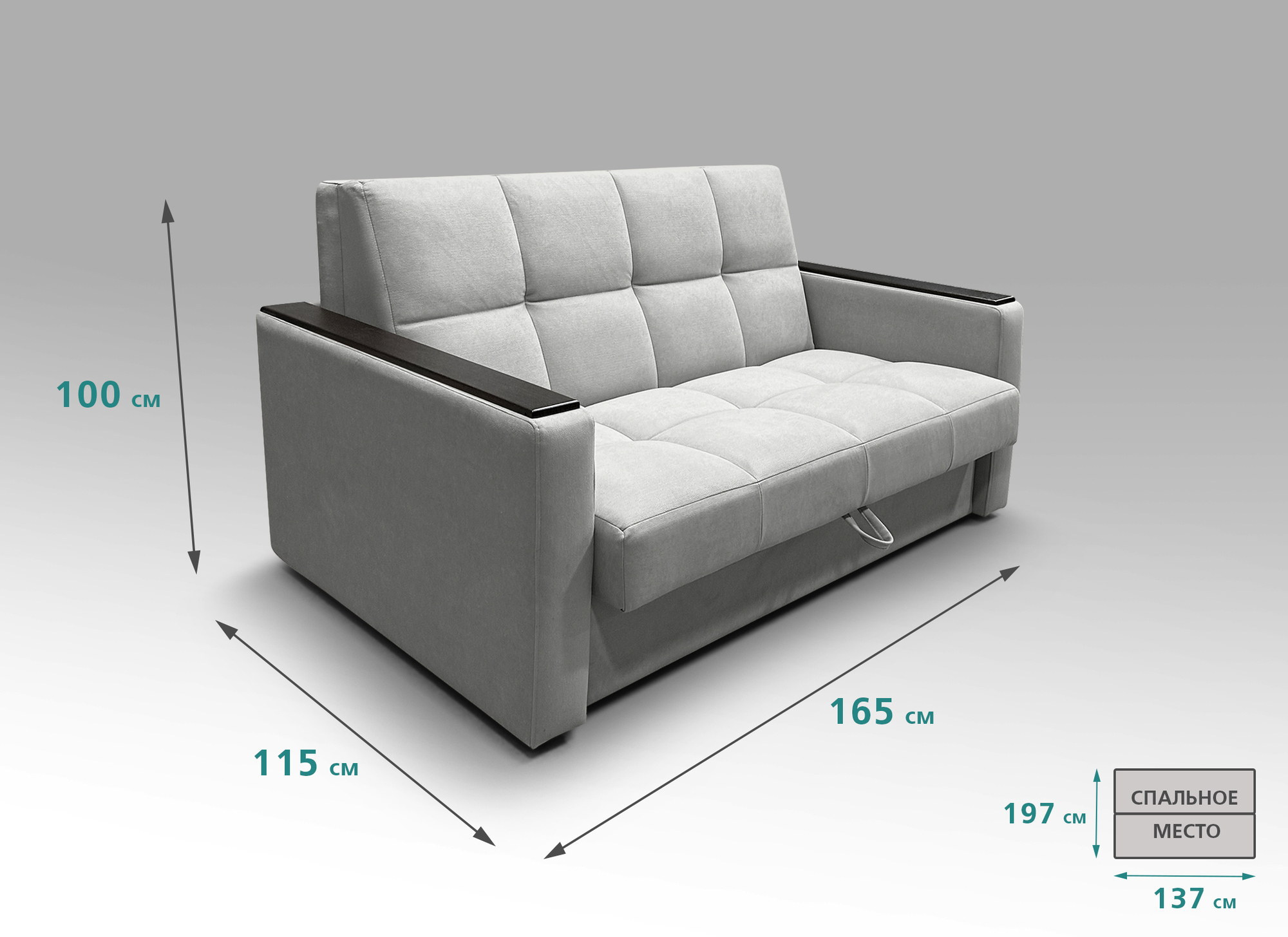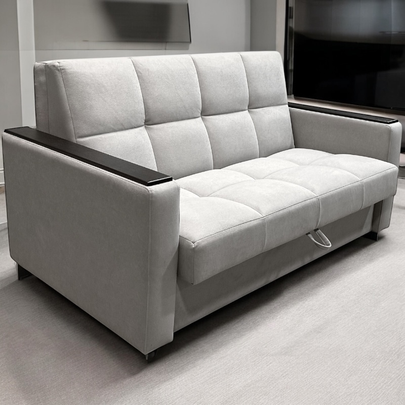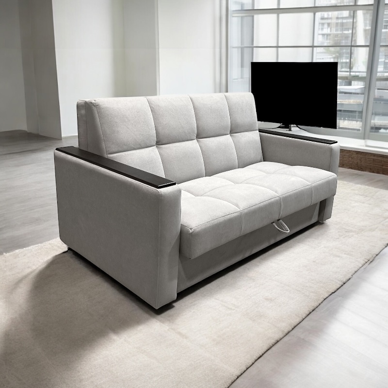 Компактный диван быстро превращается в ровное спальное место. Также диван "Рэй" имеет вместительный ящик для хранения белья и постельных принадлежностей.