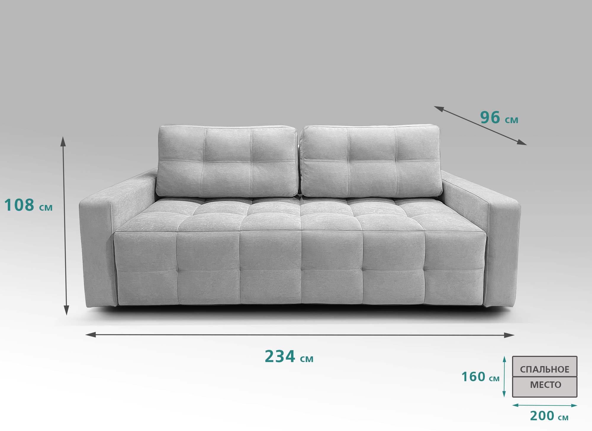 - Наполнение (спинка, сиденье): пружинный блок боннель 140 мм, высокоэластичный пенополиуретан повышенной плотности.