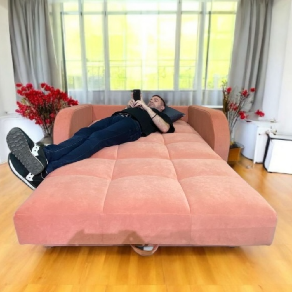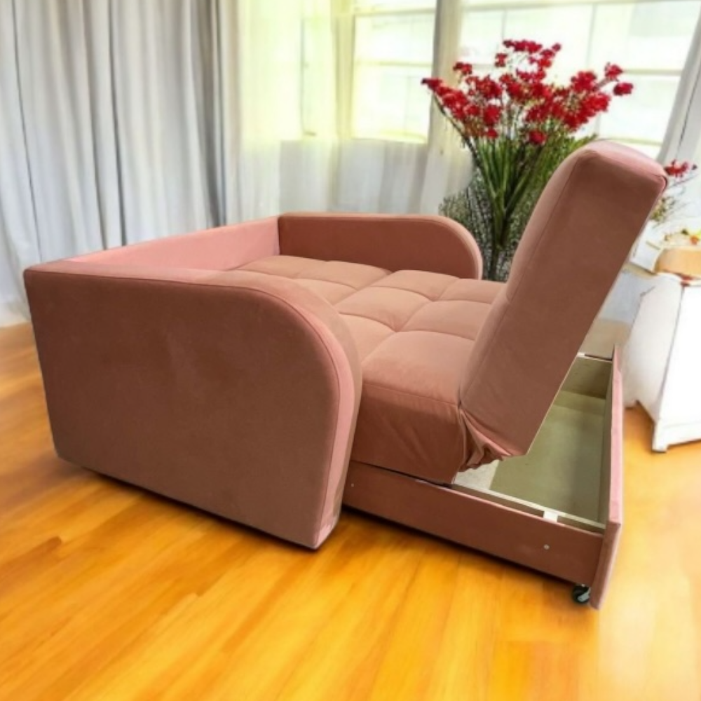 Компактный диван быстро превращается в ровное спальное место. Также диван "Рэй" имеет вместительный ящик для хранения белья и постельных принадлежностей.