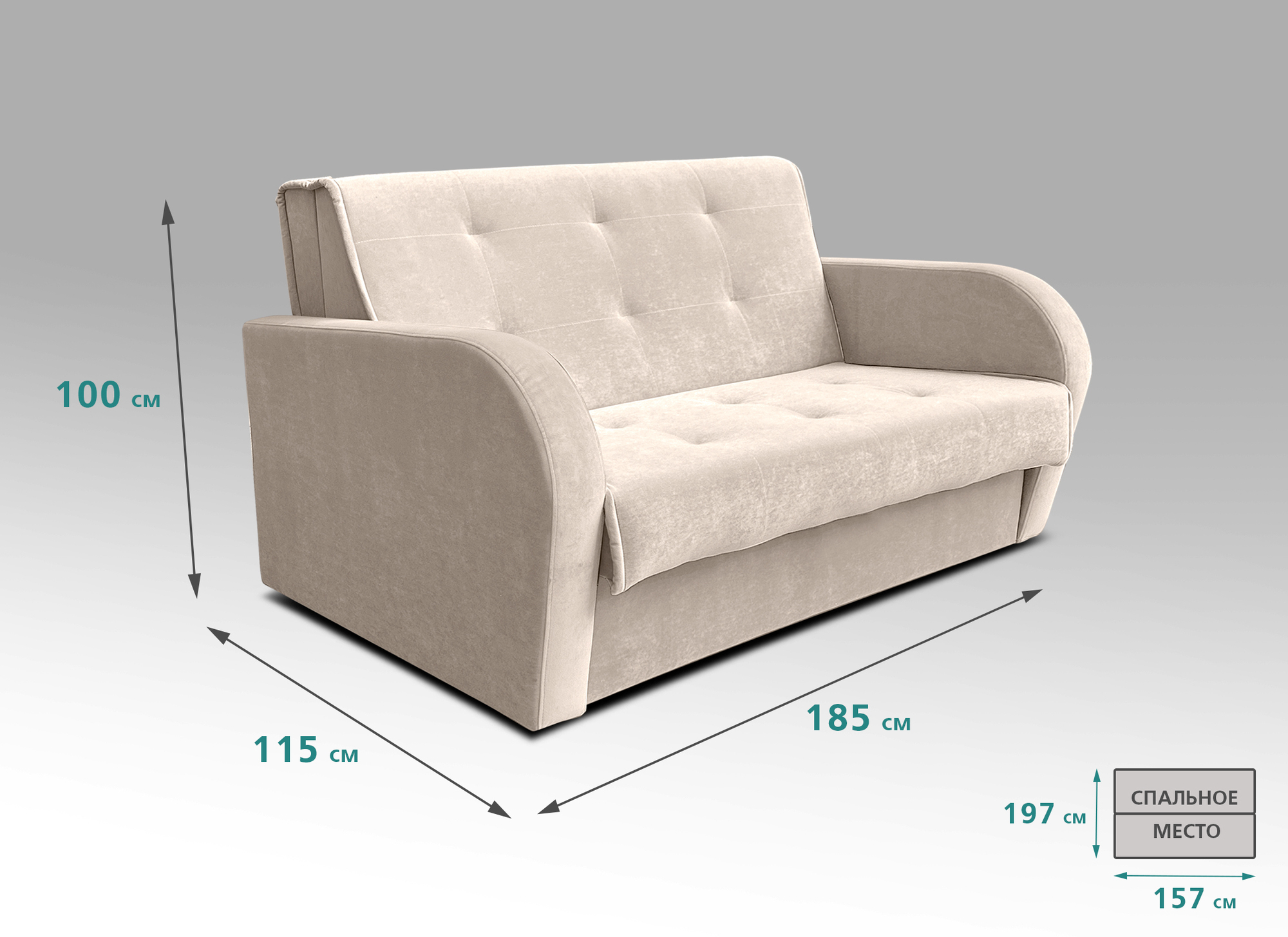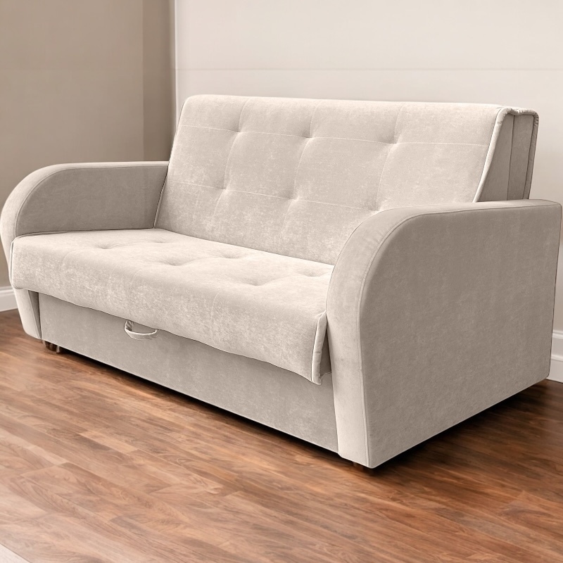 Компактный диван быстро превращается в ровное спальное место. Также диван "Рэй" имеет вместительный ящик для хранения белья и постельных принадлежностей.