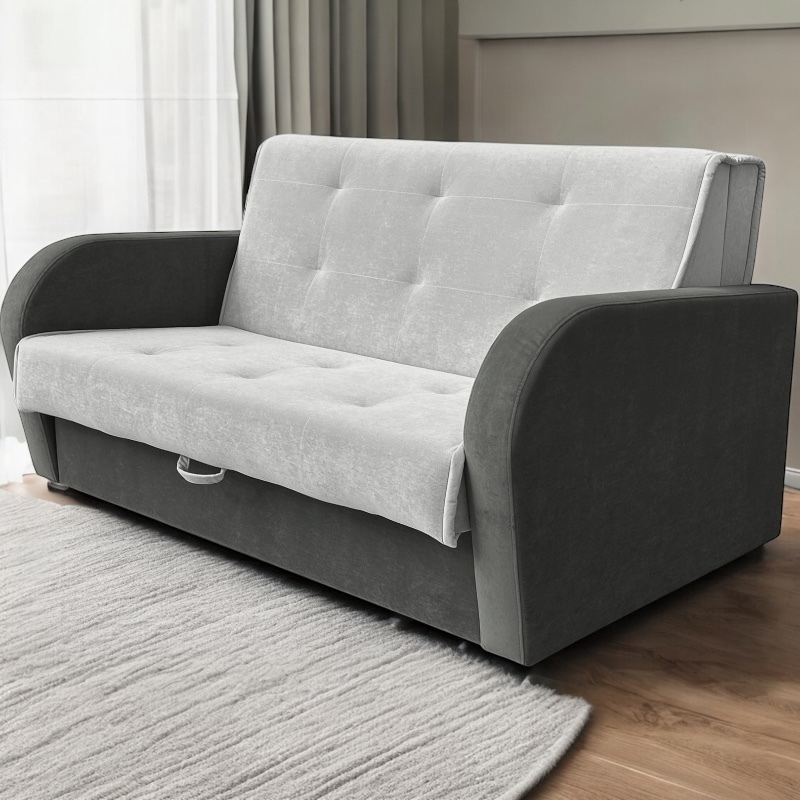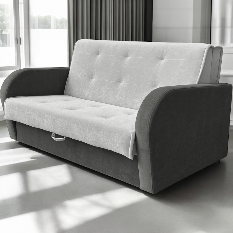 Компактный диван быстро превращается в ровное спальное место. Также диван "Рэй" имеет вместительный ящик для хранения белья и постельных принадлежностей.
