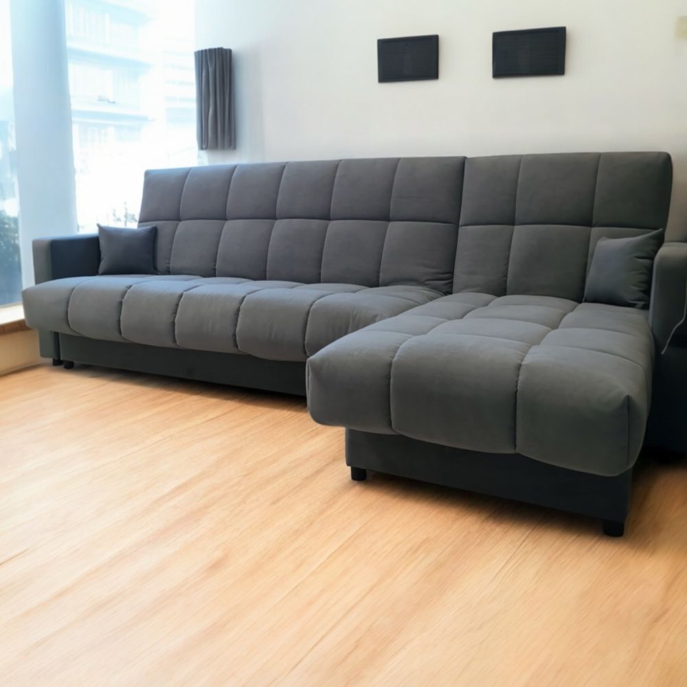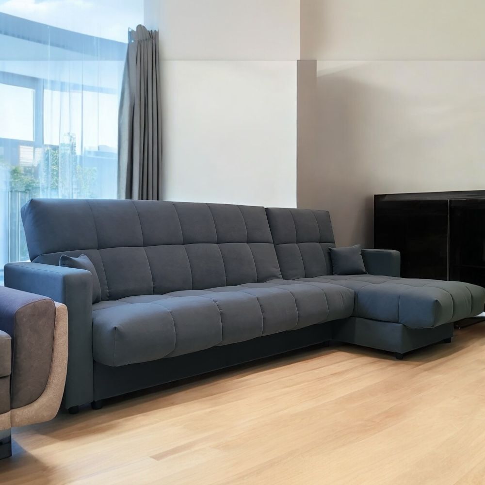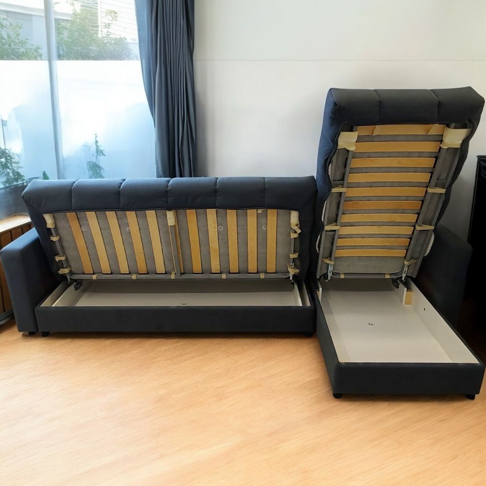 Внутри дивана располагаются вместительные секции для хранения, в которые можно спрятать постельное белье, убрать детские игрушки или одежду по сезону.