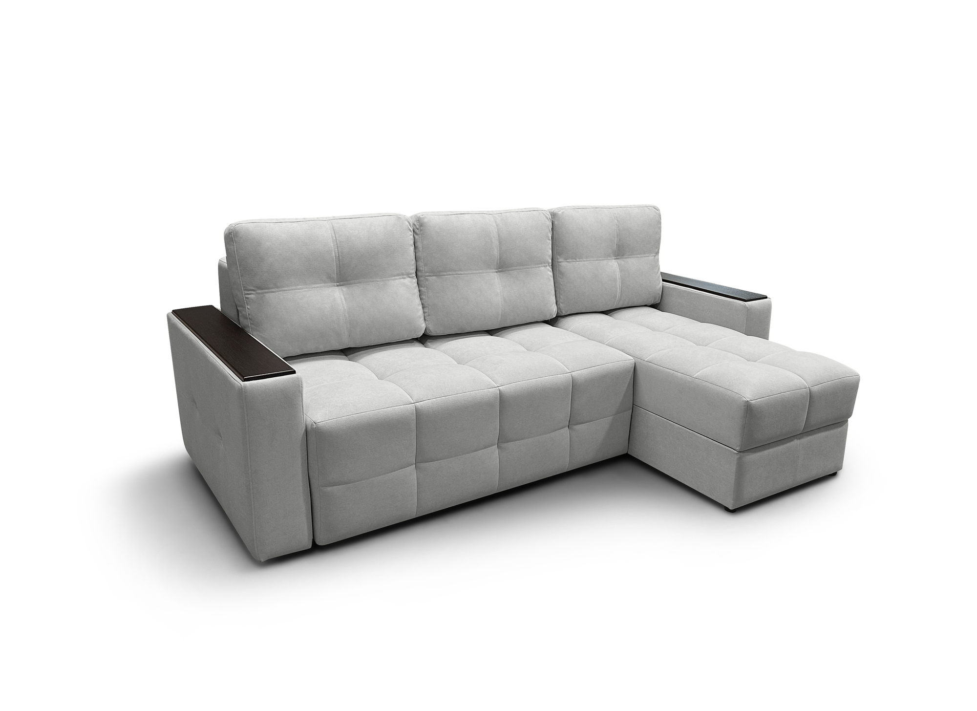 Диван угловой Симпл Клетка с МДФ, светло-серый