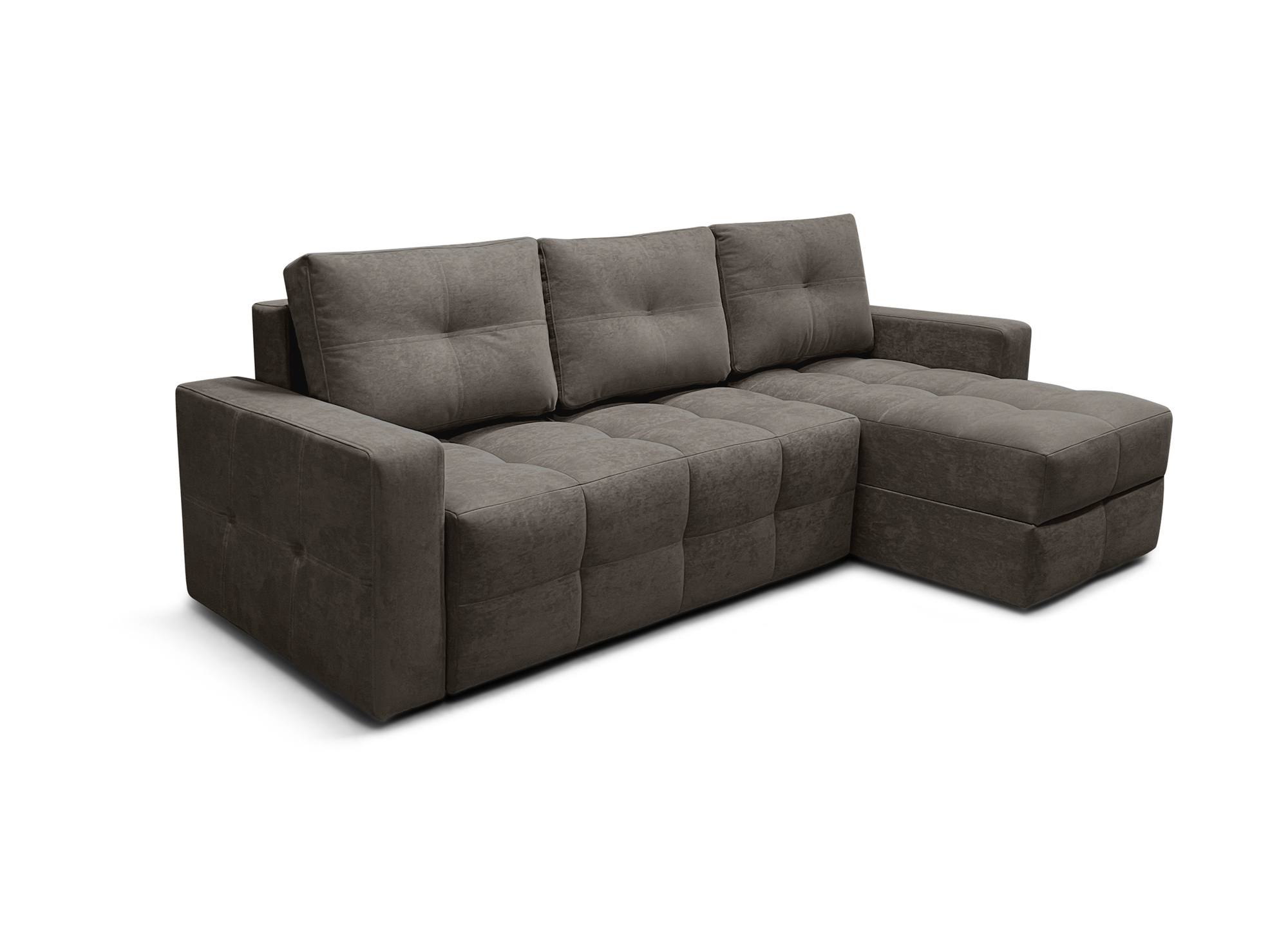 Диван угловой Симпл Клетка с оттоманкой, коричневый велюр