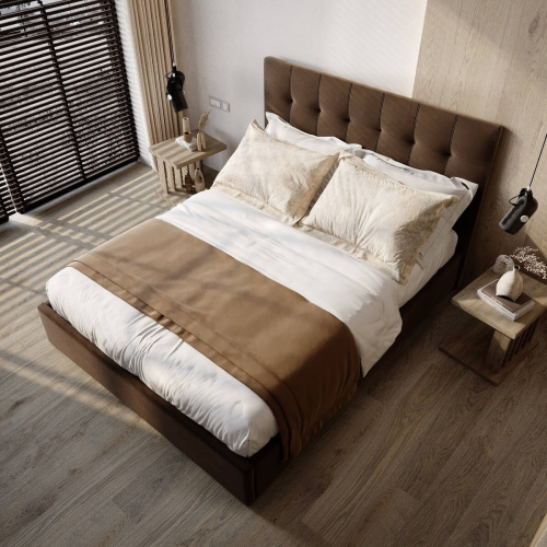 Изголовье выполнено в стиле каретной стяжки, используется ППУ 2236 толщиной 50 мм.